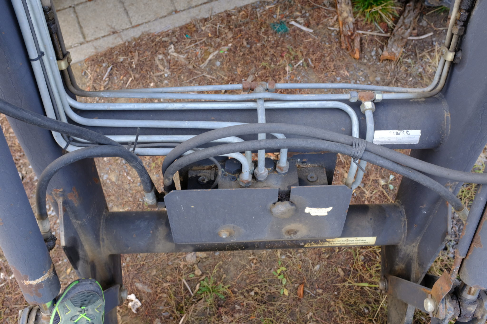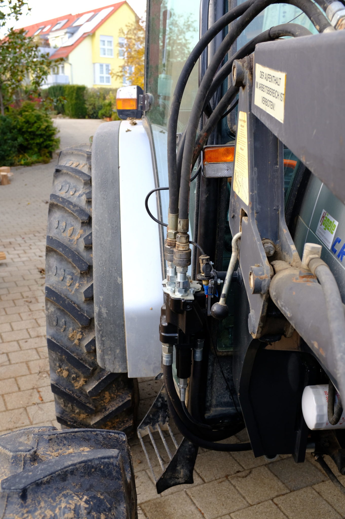 Lamborghini Am Lamborghini wird ein Baumstammverlader angebracht. vordere Anschlüsse noch ist die alte Gabel dran,,, seitliche Anschlüsse