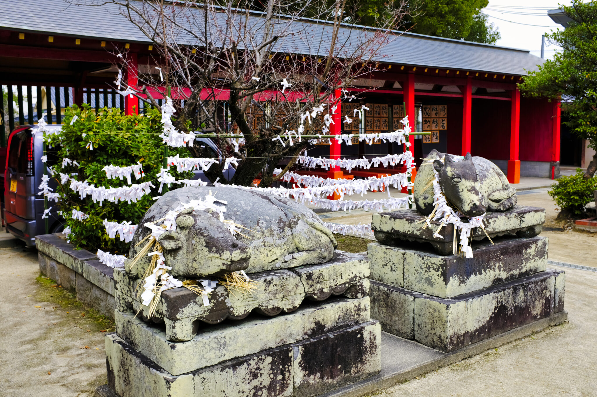 Auf dem Gelände steht ein großer Kampferbaum, der fast 1000 Jahre alt ist und von der Präfektur zum Naturdenkmal erklärt wurde. Es gibt auch eine Legende über die verehrte Gottheit Sugawara no Michizane und den Kappa, und als Beweis für diese Legende wird die „Hand des Kappa“ immer noch sorgfältig als Schatz im Tenmangu-Schrein aufbewahrt. Jedes Jahr am dritten Sonntag im Oktober findet das Herbstfest „Okunchi“ statt, das von der Präfektur als immaterielles Kulturgut ausgewiesen wird.