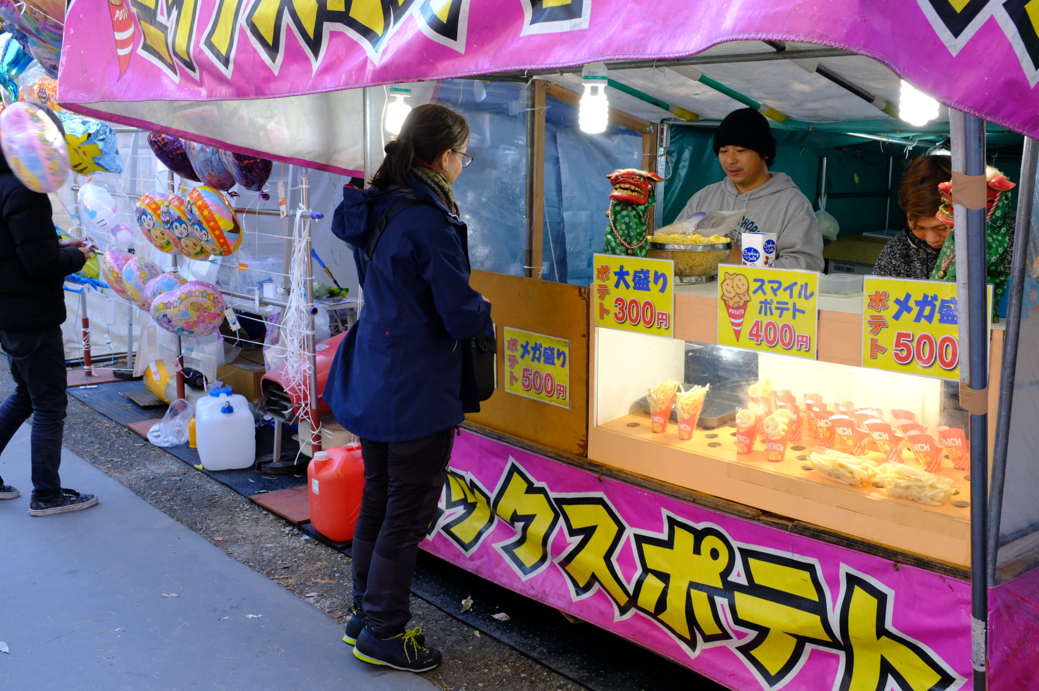 Vor dem oßSchrein sind zahlreiche Ständle aufgebaut an denen es diverse Kleinigkeiten zu Essen gibt.