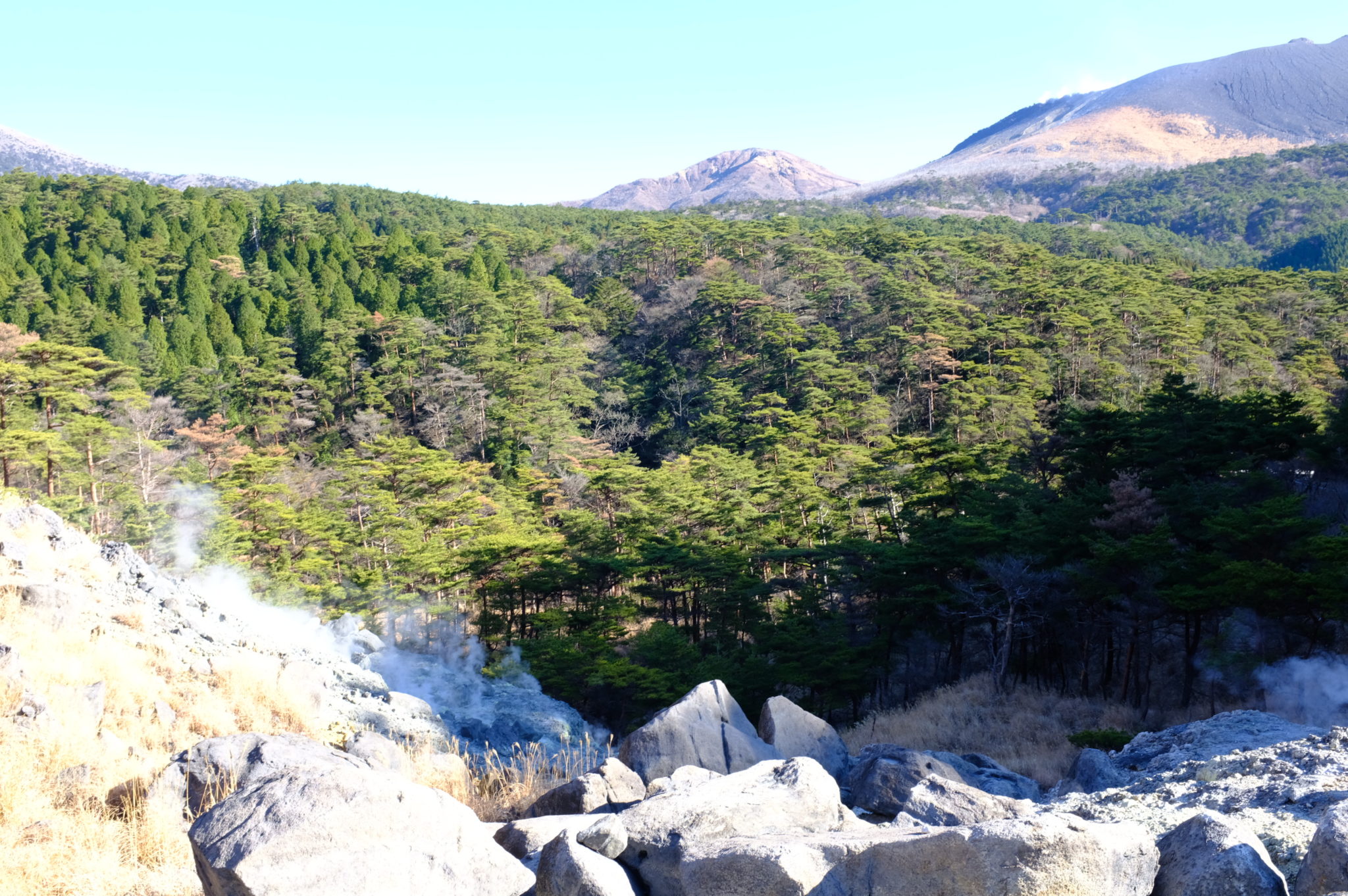 Nach keinem  besonderen Frühstück gehts bei null Grad hoch in den Kirishima-Kinkowan-Nationalpark.