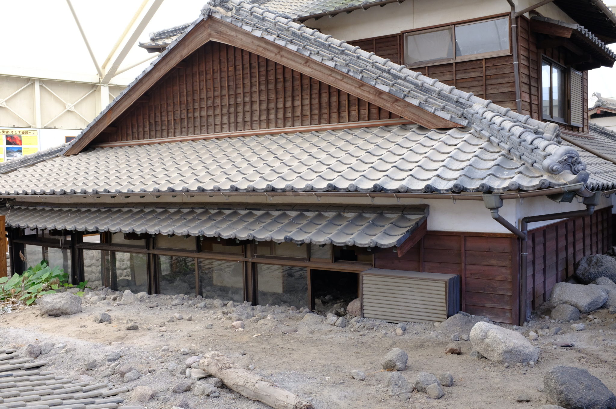 In Shimbara besichtigen wir das Vulkanausbruchsmuseum und verschüttete Häuser.