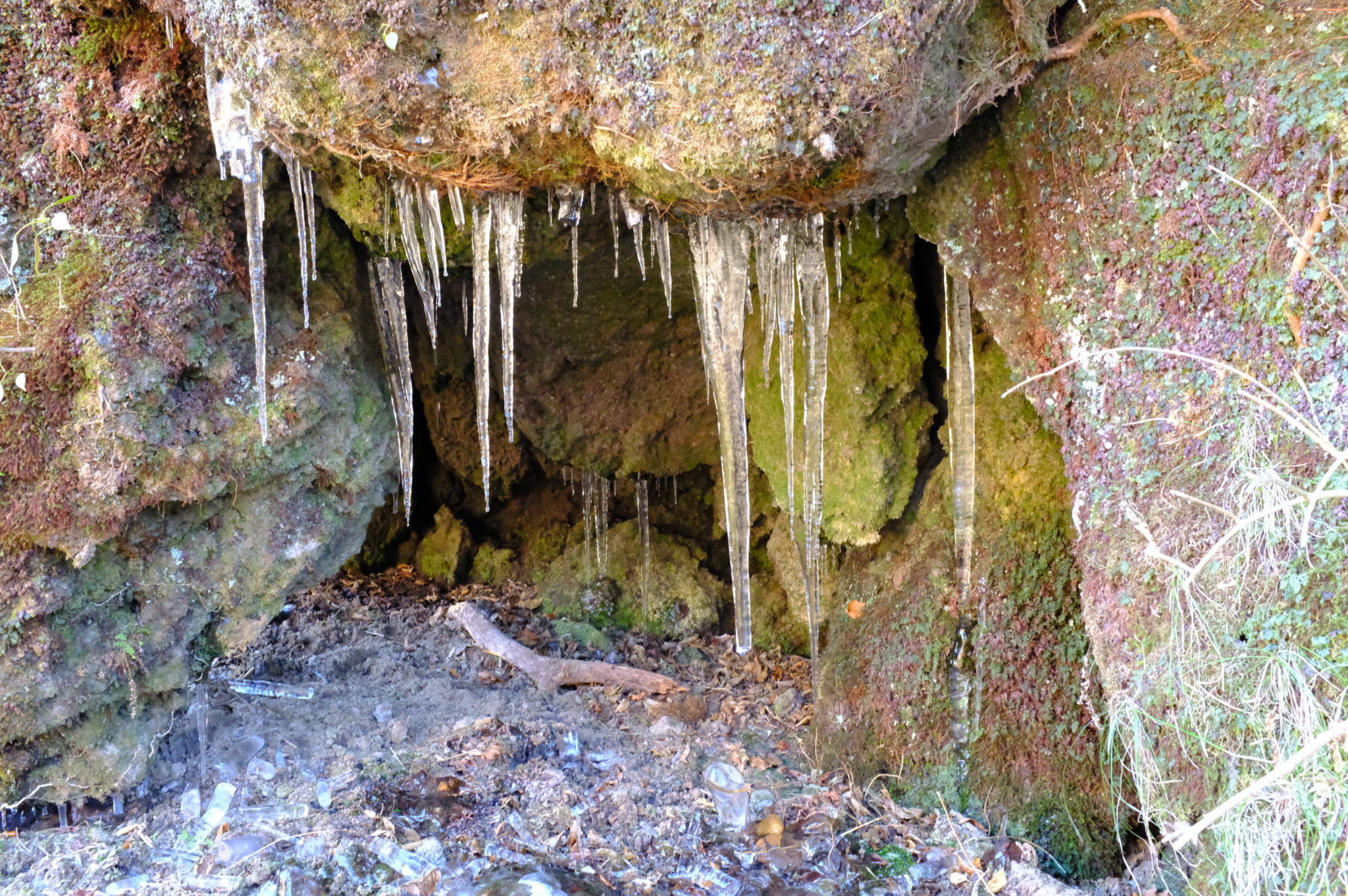 Gegen elf machen wir uns an den frostigen Abstieg. Ein paarmal müssen wir anhalten um uns aufzuwärmen. Der zweite Berg ist nicht so hoch, 650 Meter. Es geht eine sanft Steigung hinauf. Zweimal windet sich die Strasse korkenzieherartig .
