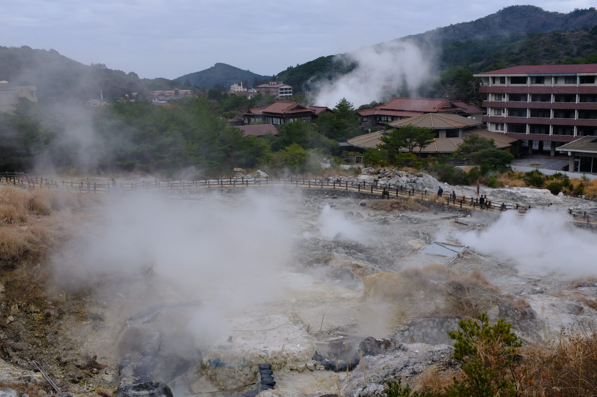 Unzen ist ein kleines Dorf aber mit vielen Hotels, von denen die meisten unbenutzt vor sich hingammeln. Auch “Die “Attraktion hier, nämlich die heißen Dampfquellen, sind sehr lieblos dargestellt. Wir sind enttäuscht, da sind wir von Beppu und Yufuin schon besseres gewöhnt.