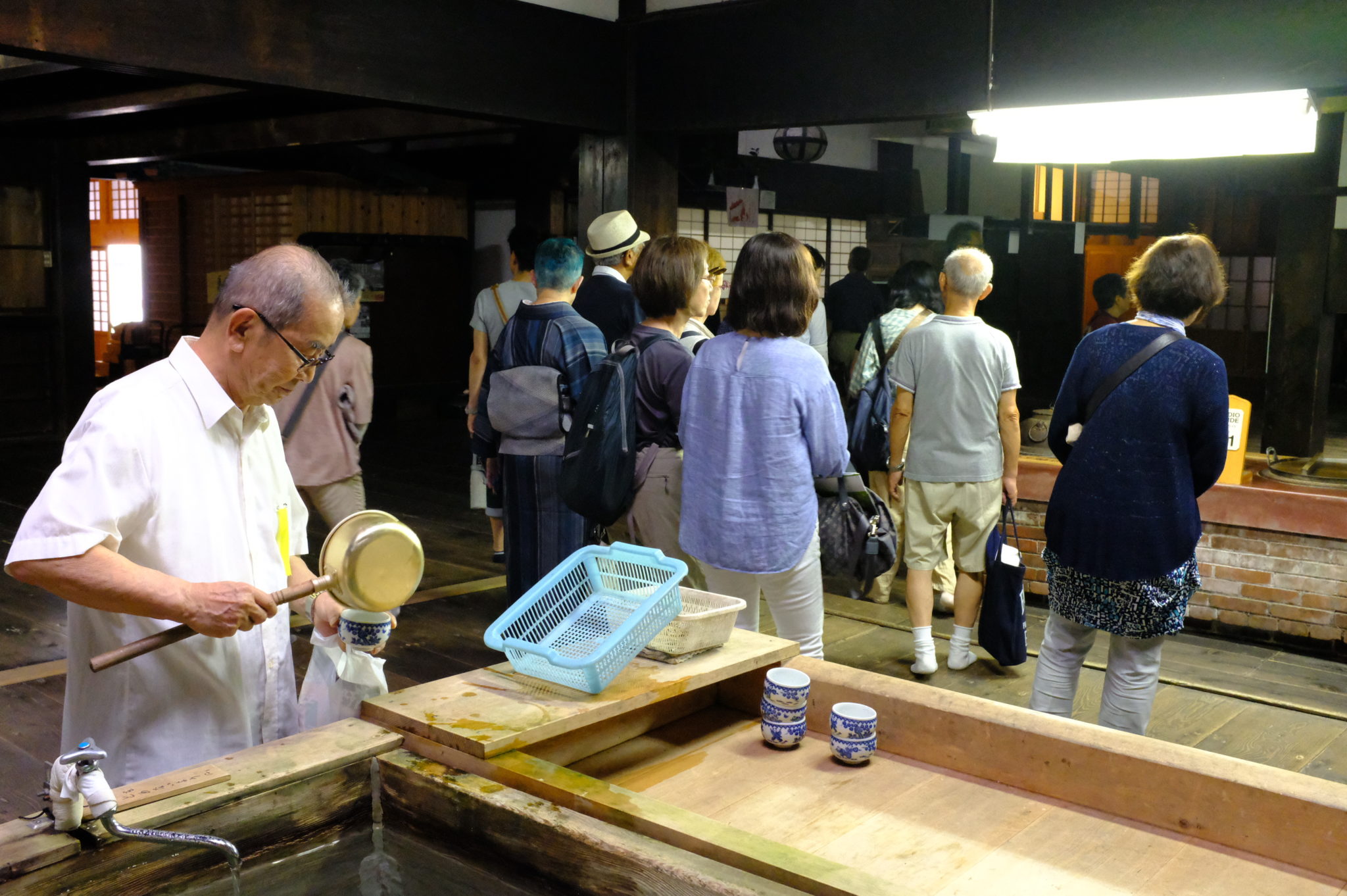 In Yunotsu, Besuch des berühmten Onsen. Die Quelle ist bei einem Erdbeben 1873 entstanden.