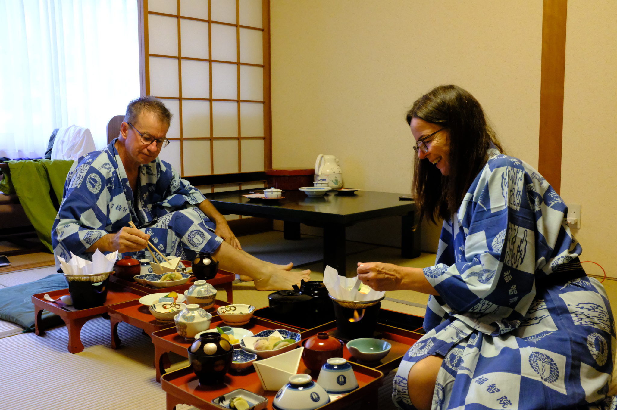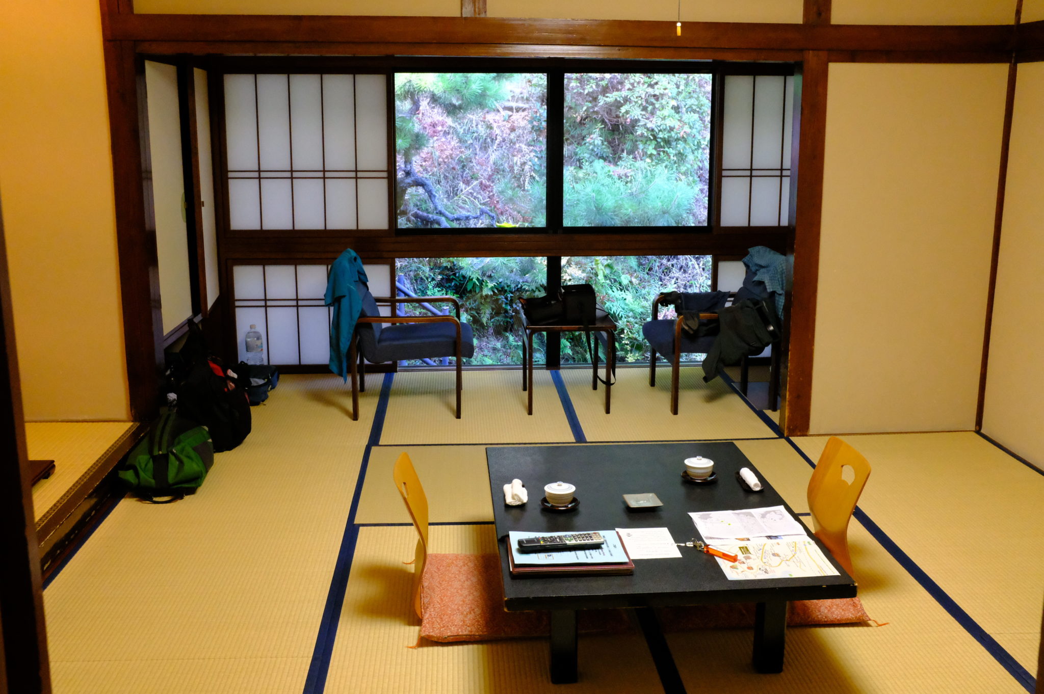 Gegen halb fünf haben wir es dann endlich geschafft. Wir sind hier wieder in einem Tempelhotel. Alles recht einfach, aber es genügt. Die Aussicht ist toll und das Onsen Bad ist 43 Grad warm.