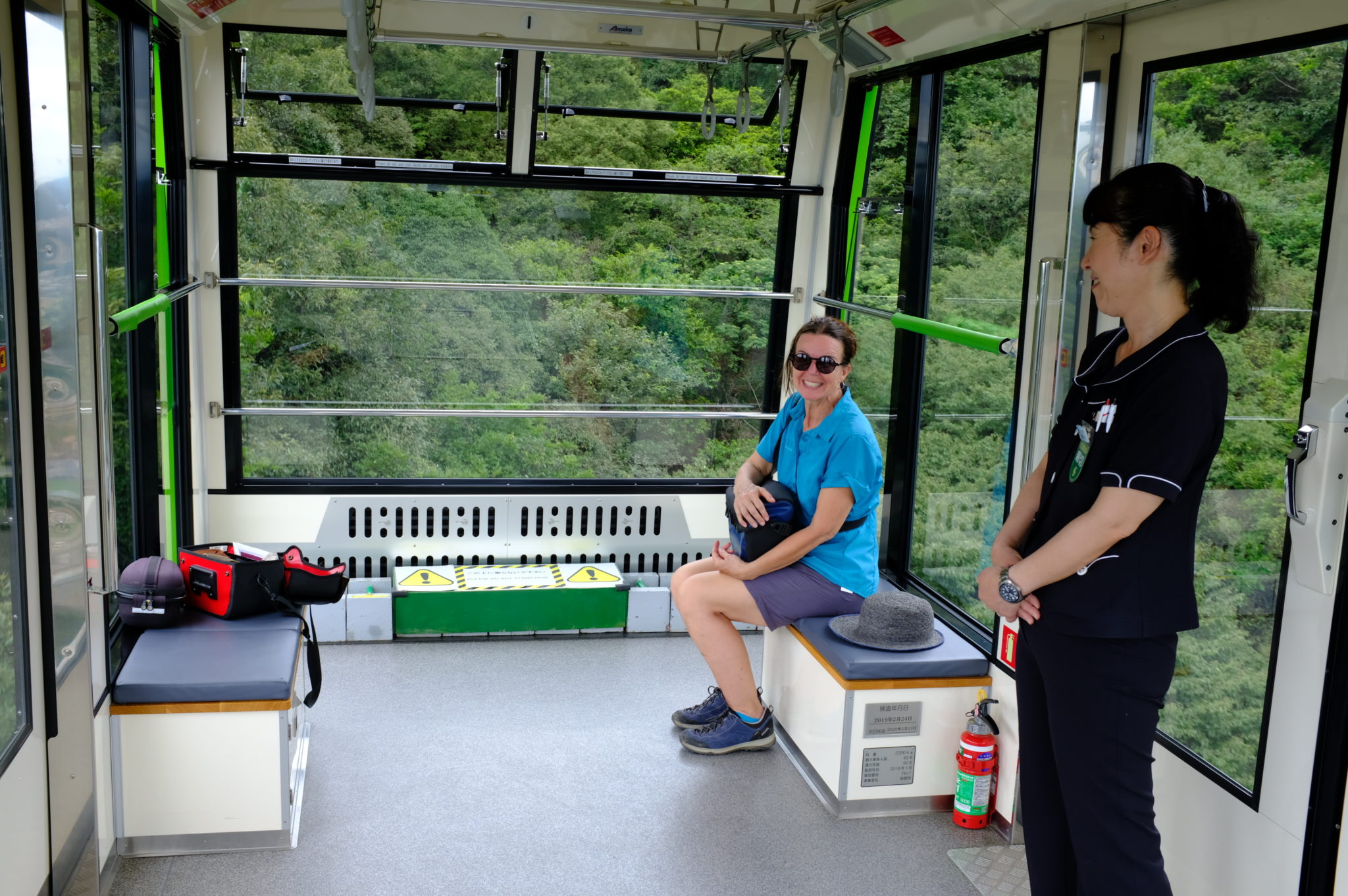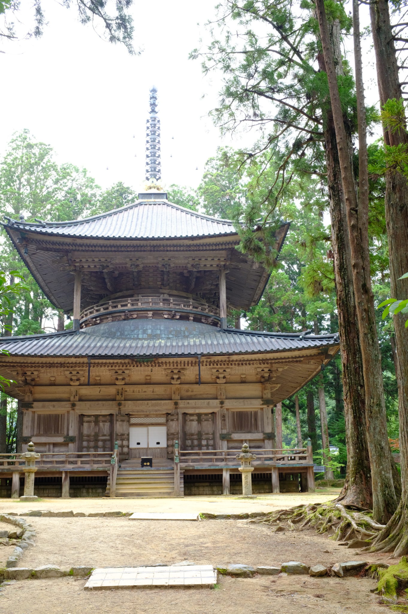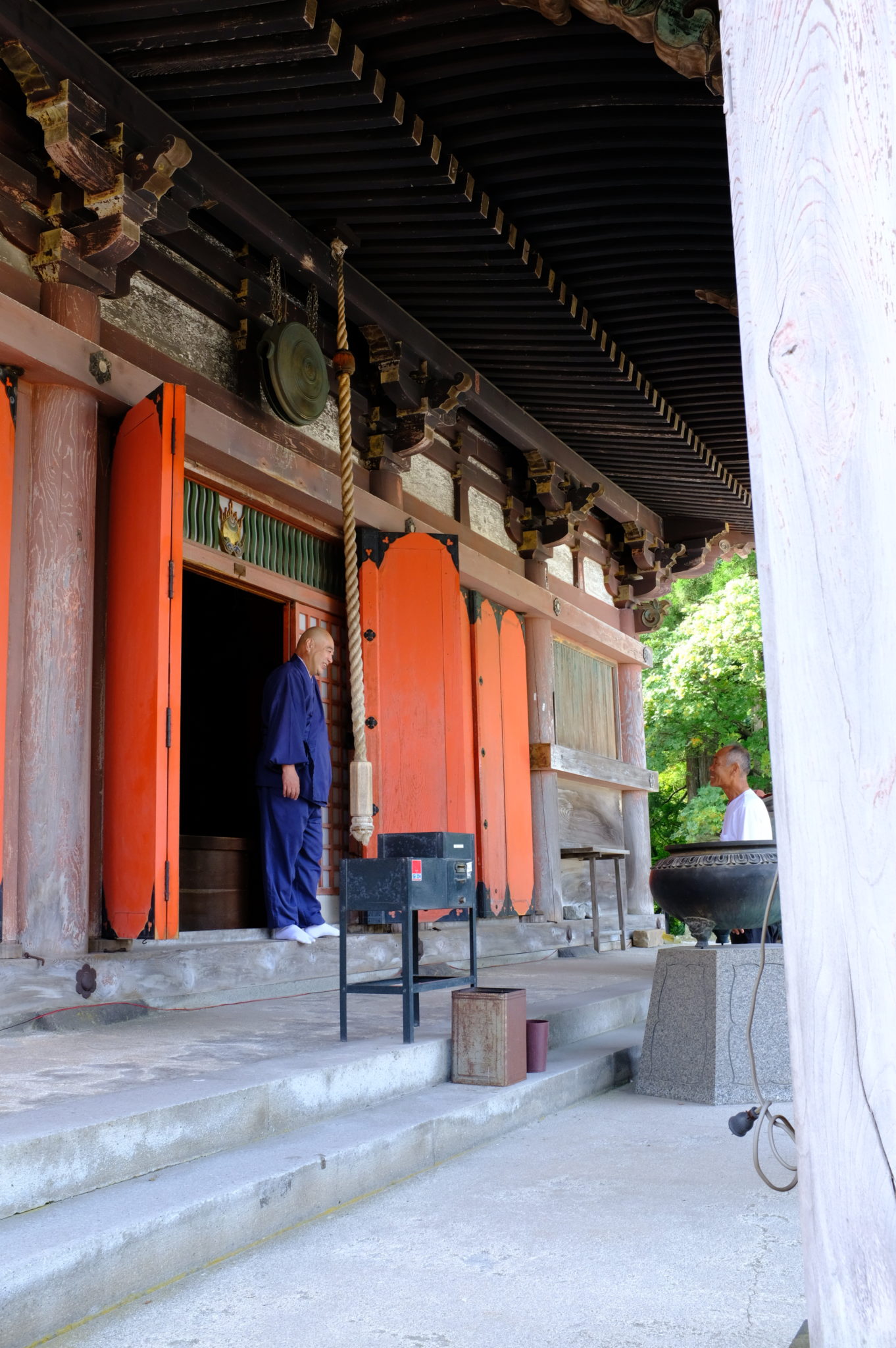 Nach ein paar Kilometern machen  wir Halt und schweben mit der Seilbahn hoch auf den Sosha. Dort wandern wir durch uralte Wälder von Tempel zu Tempel. Riesige Japanische Sicheltannen und imposante Abies, deren Art ich aber nicht kenne.