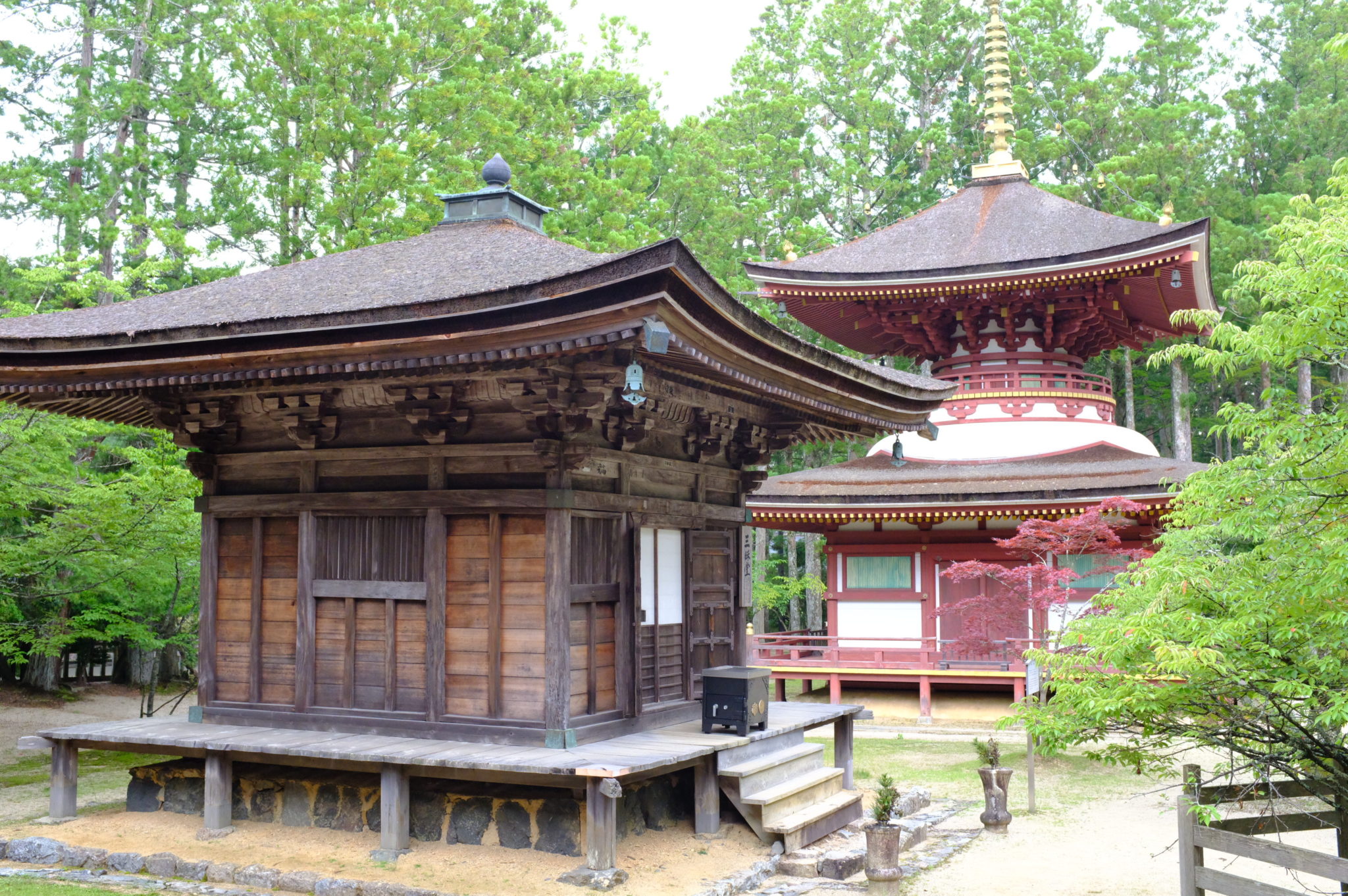 Sehr luxuriös geht es  mit dem Mietwagen hoch nach Koyasan zur Tempel/ Hotelunterkunft. Bis zum Einchecken im Hotel haben wir noch eine Stunde Zeit um den Kongobuji Tempel zu besichtigen. Entspannung im Onsen und zum Abschluß Essen auf dem Boden.