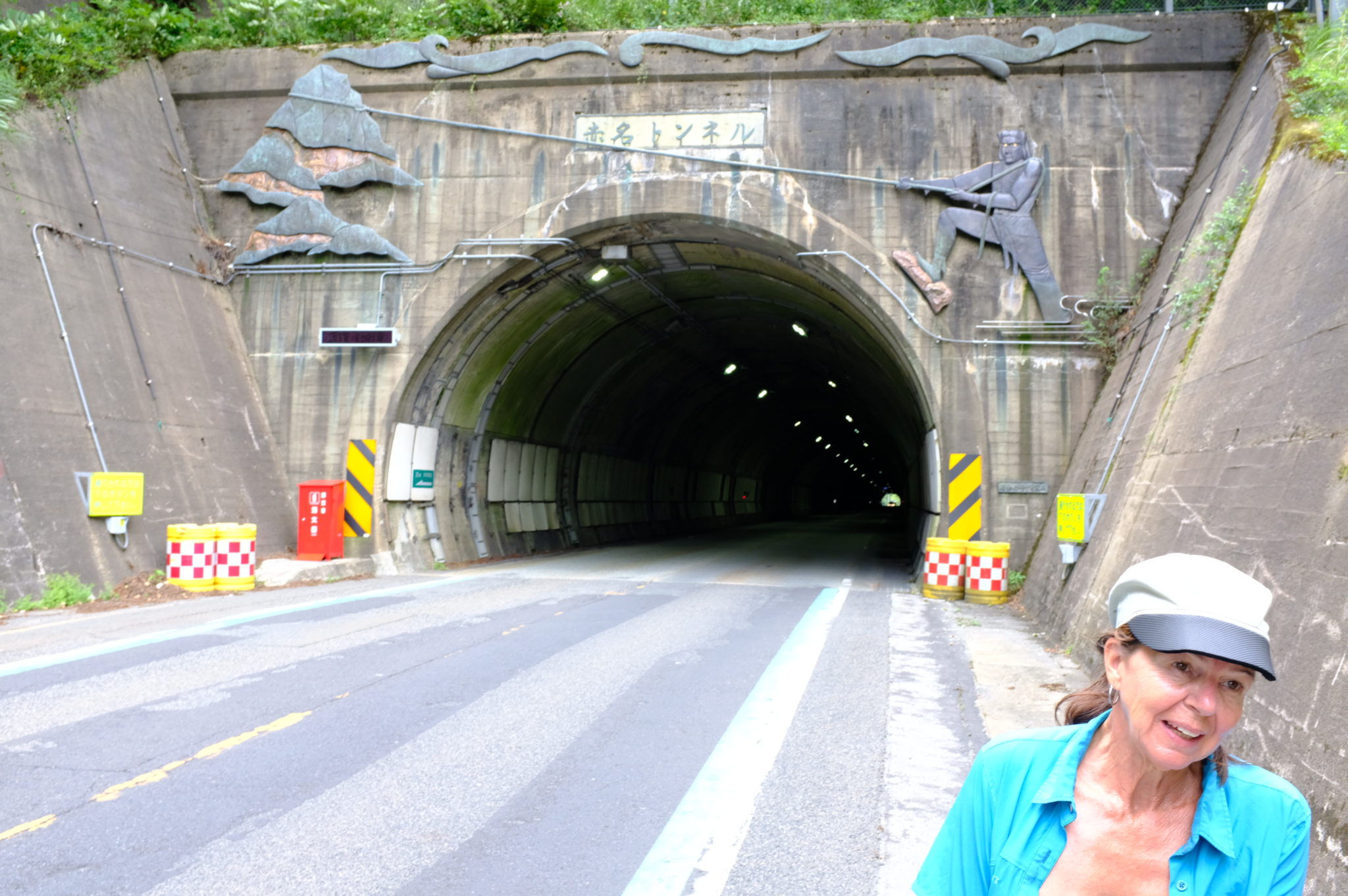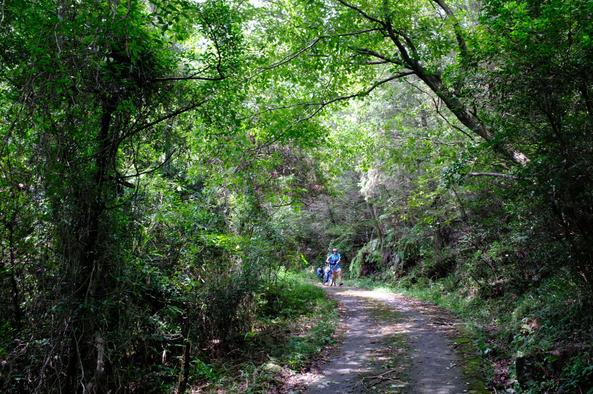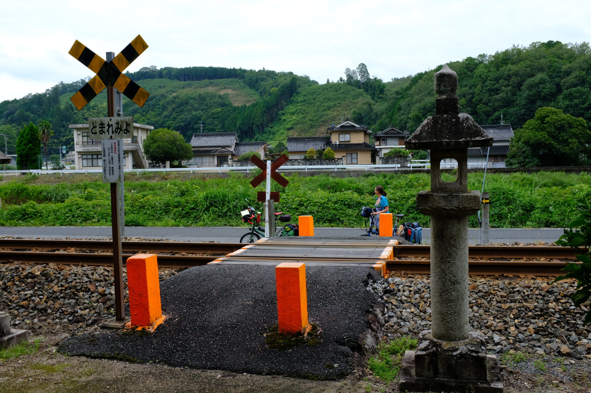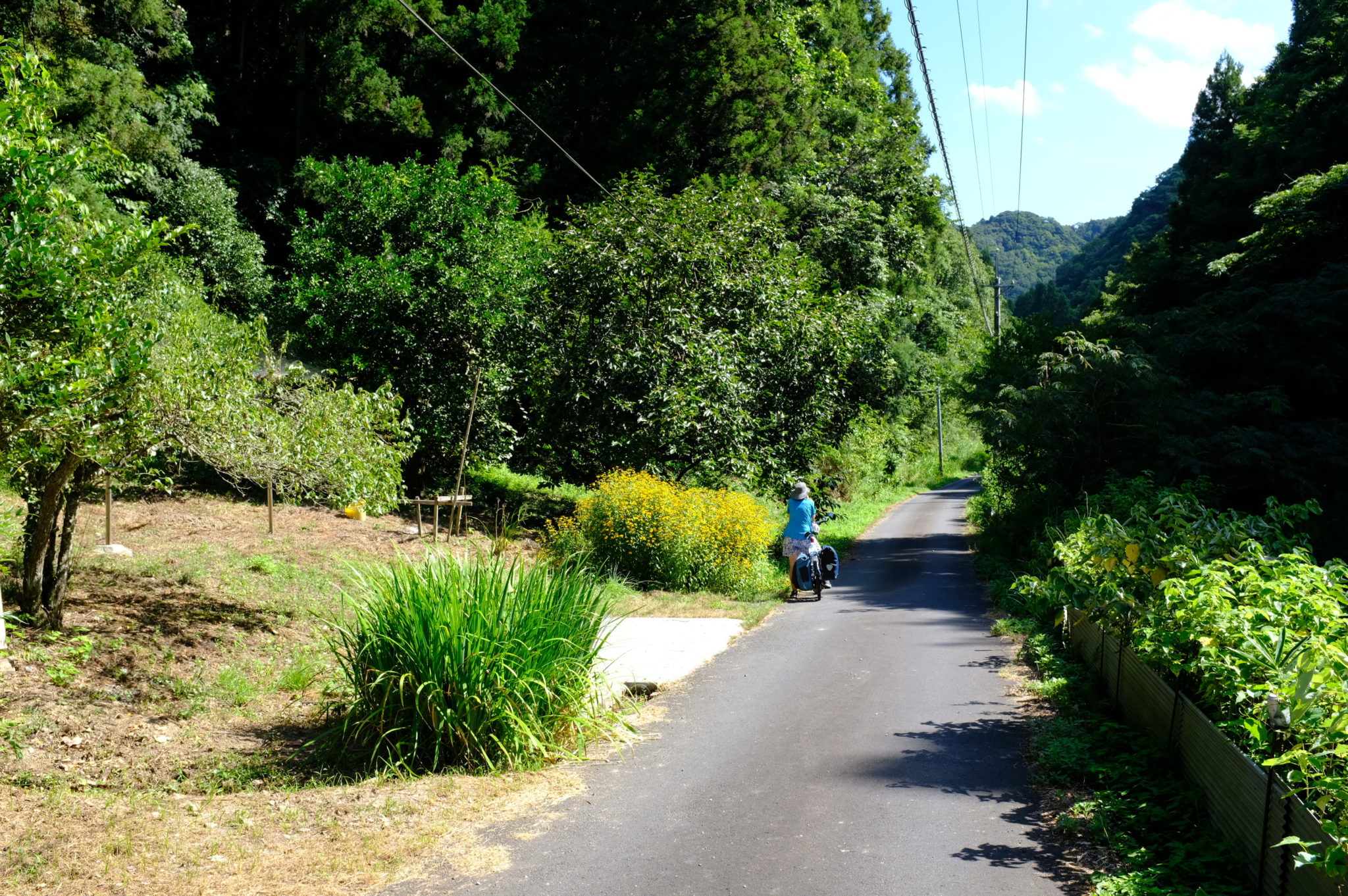 So sind es bis Miyoshi 88 Kilometer. Am Anfang hat Gaby gleich einen Platten am Vorderrad, anschließend geht es sehr ruhig durch Bambus, Scheinzypressen und Sicheltannenwälder. Anstrengend wird es am 600 Meter hohen Akana Toge- Pass. Jetzt sind wir in der Präfektur Hiroshima angekommen. Die Wolken werden immer dichter, ab und zu regnet es und es weht ein böiger Wind