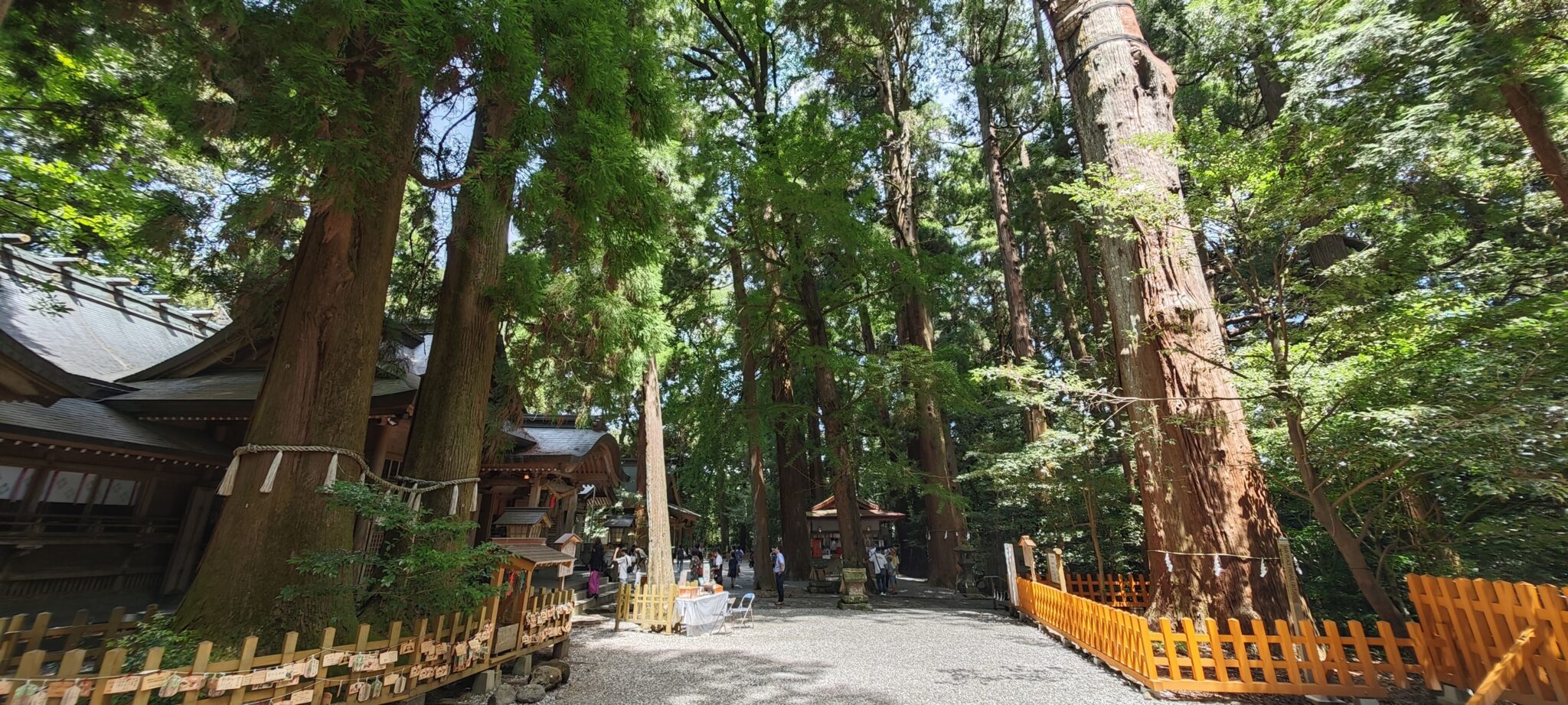 - Oberhalb der Schlucht gibt es einen Schrein mit gestäbten Sugi