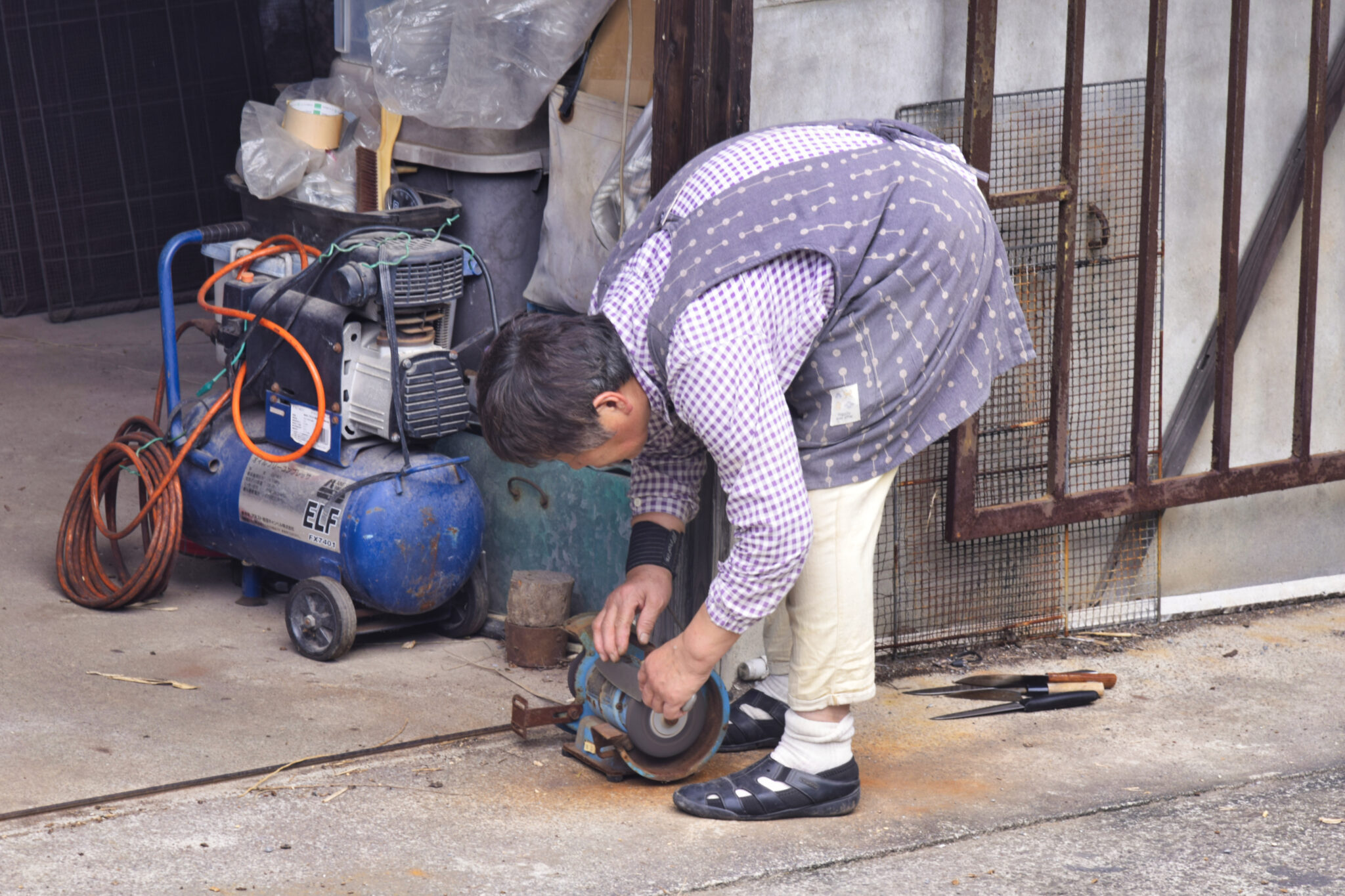 - Beim Schleifen der Messer