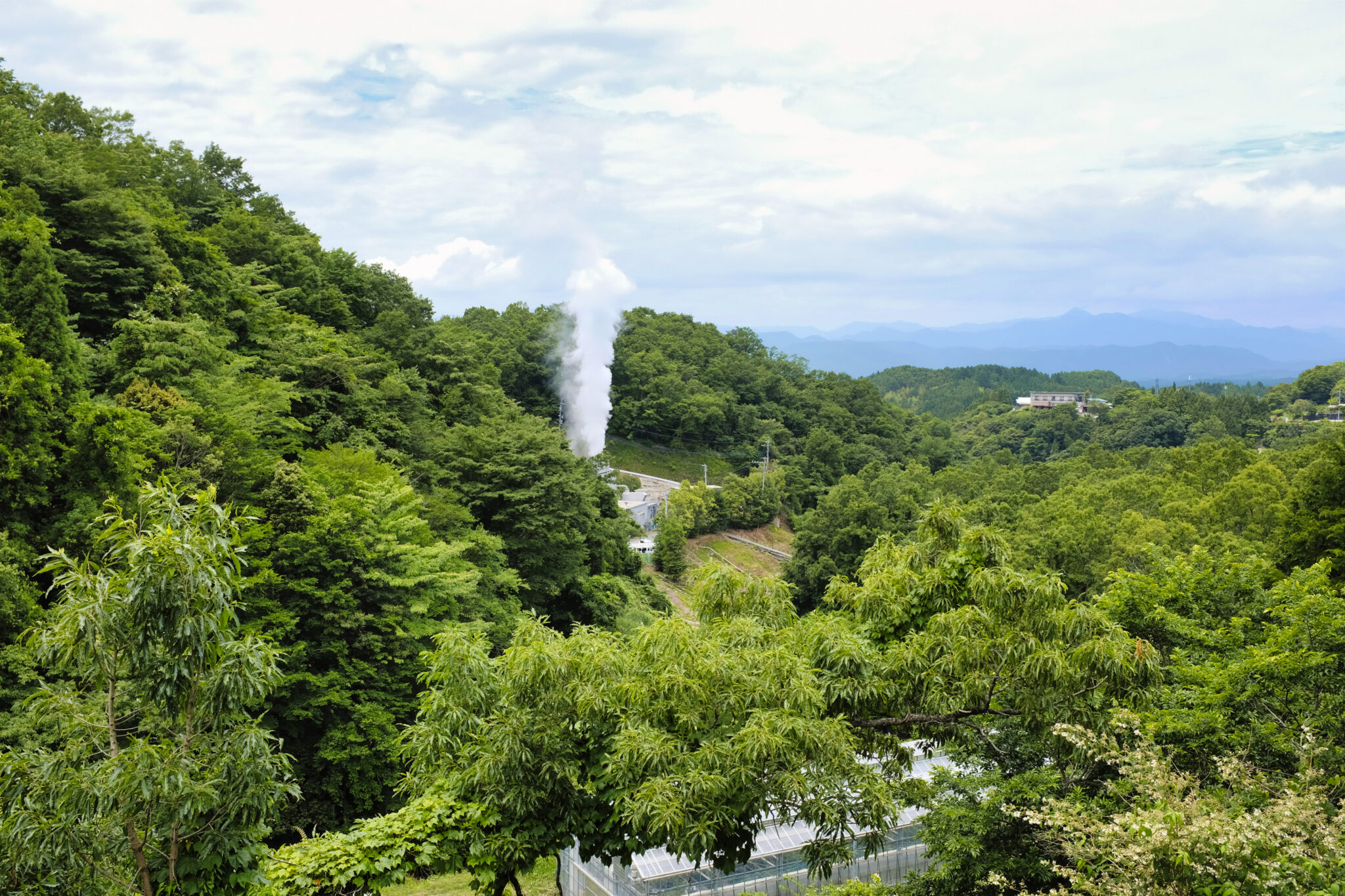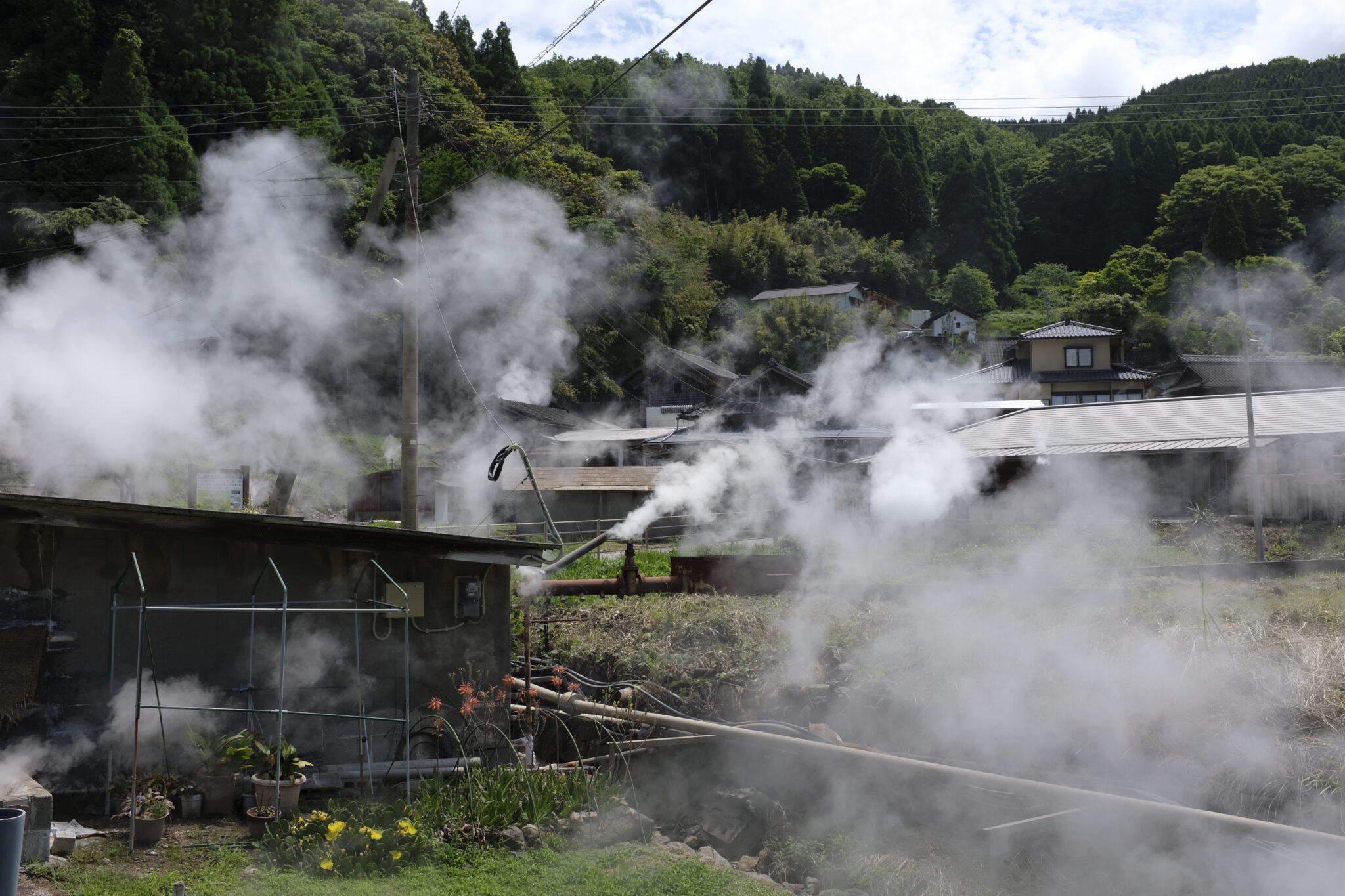 Schon von weitem ist der Dampf zu sehen wie er aus vielen großen und kleinen Röhren und selbst aus dem Boden strömt.