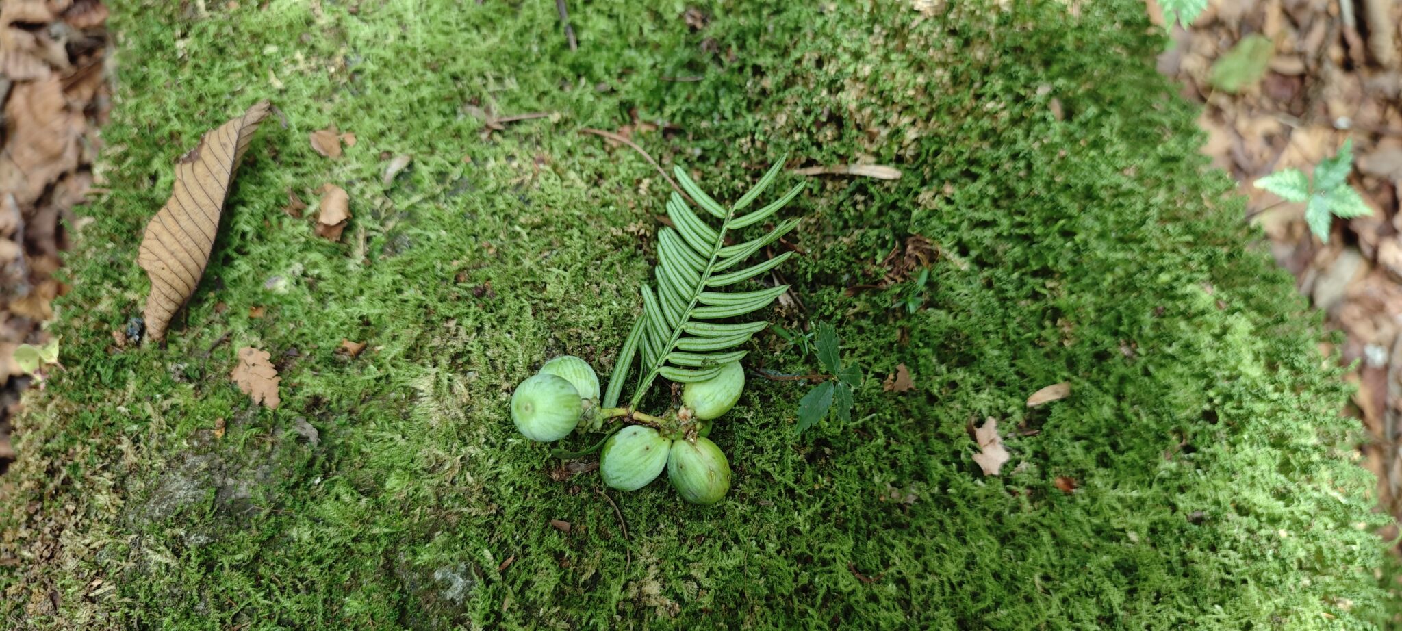 - Die essbare Früchte der japanischen Nusseibe. Das Holz ist begehrt und sehr selten.