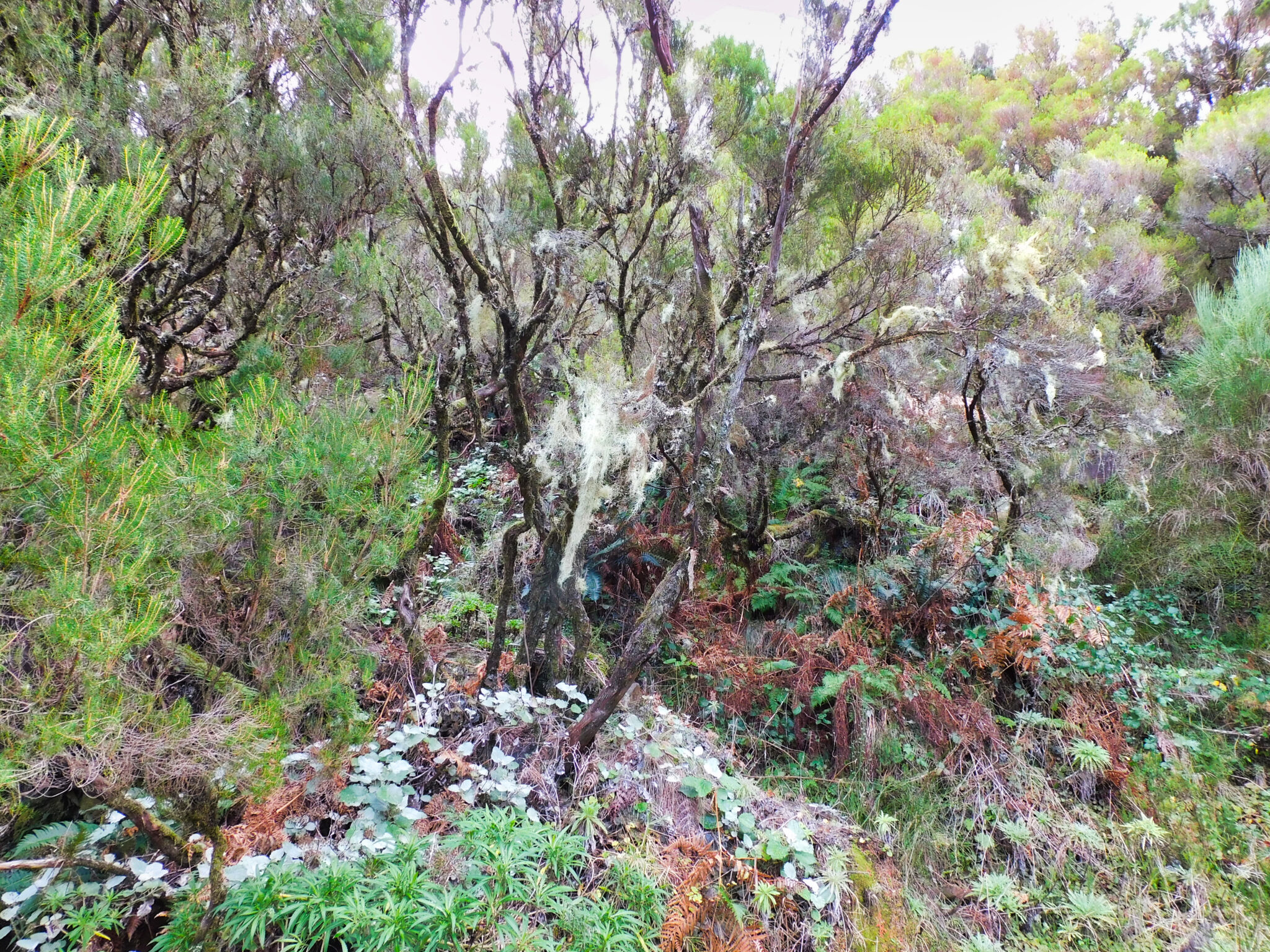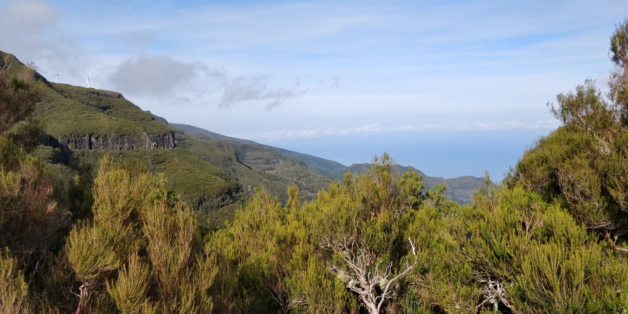 Wanderung bei Bica da Cana durch Stechginster zur Levada da Serra. Umkehrpunkt ist die Felsformation Pinaculo.