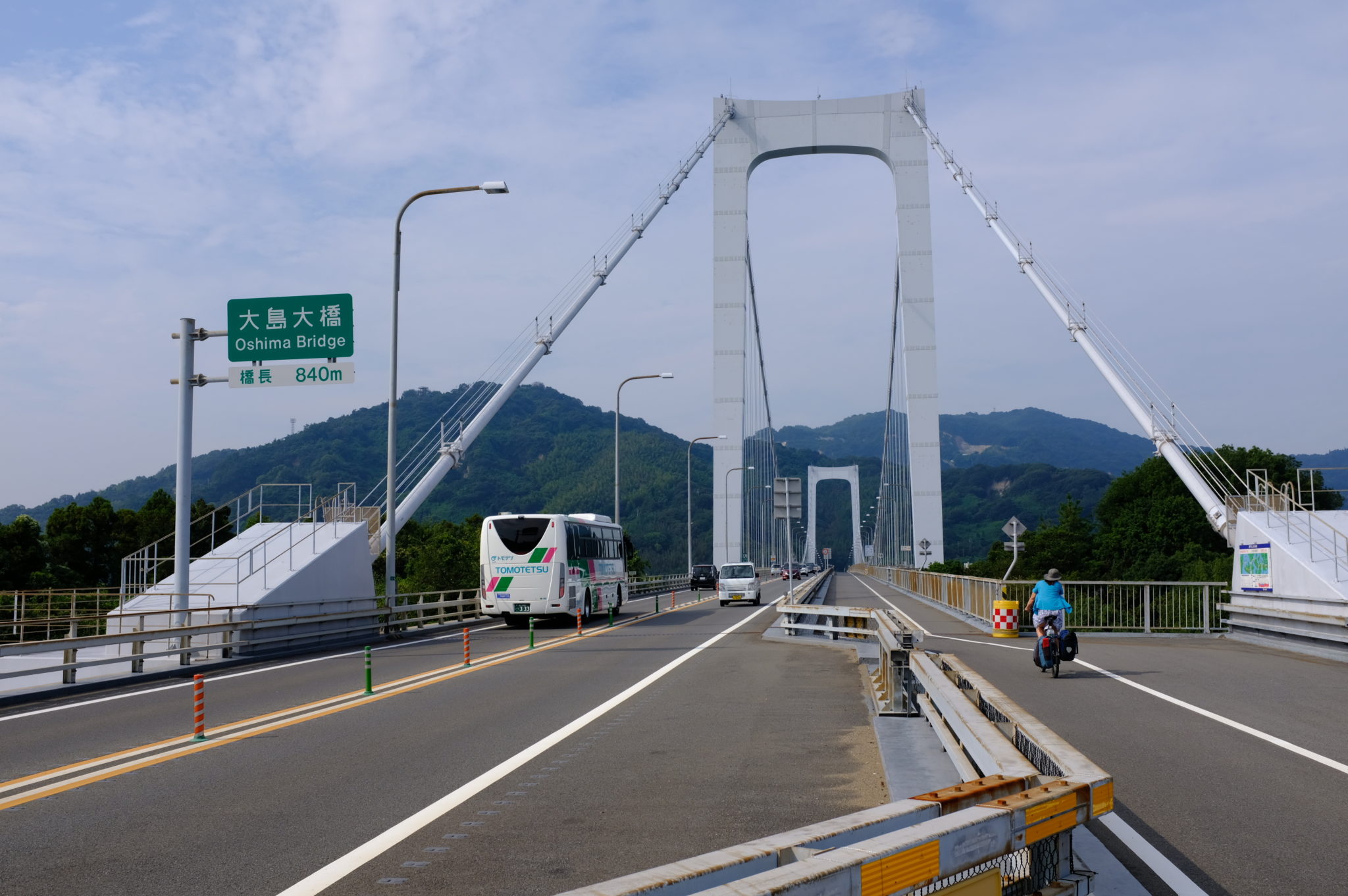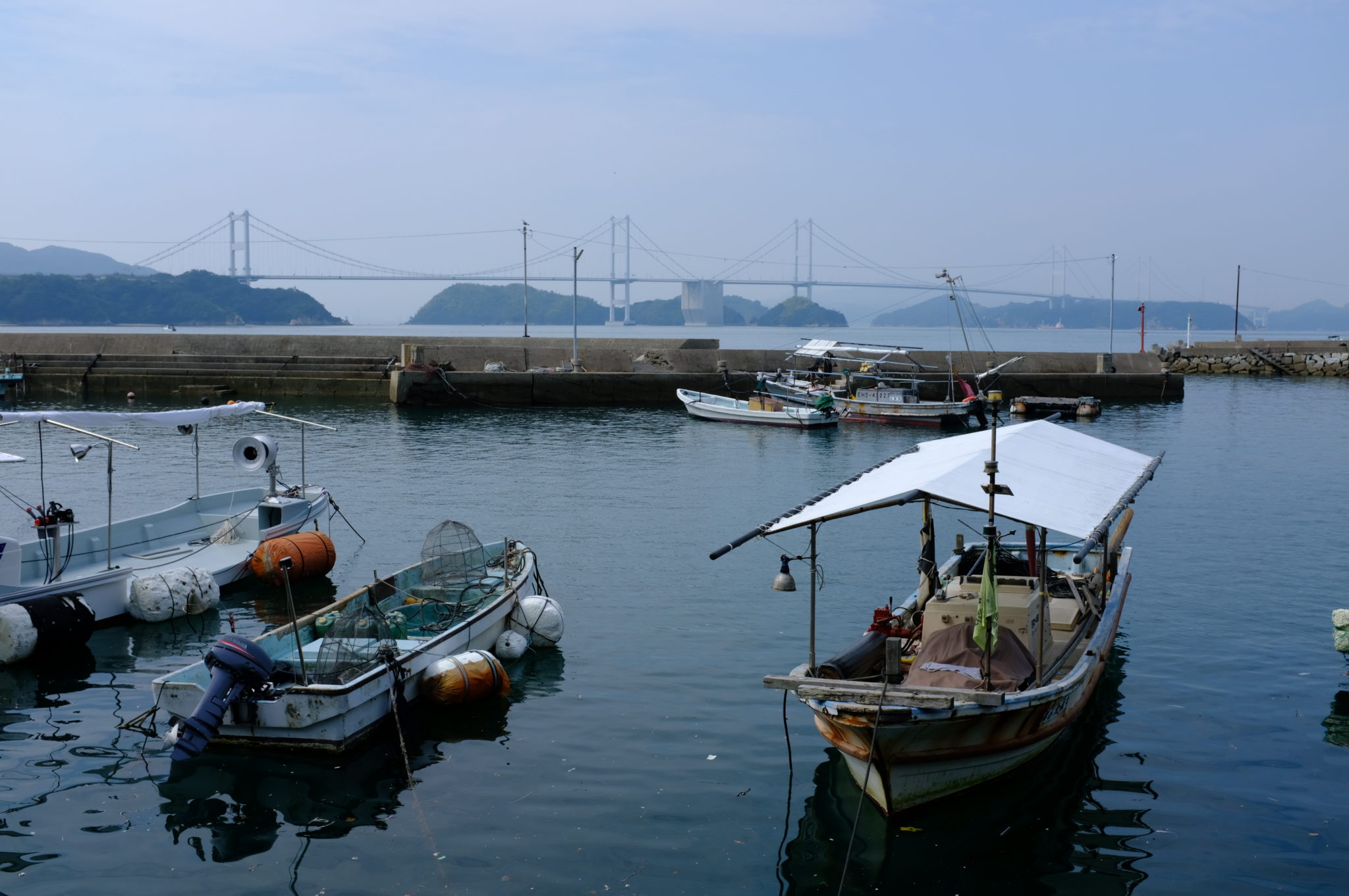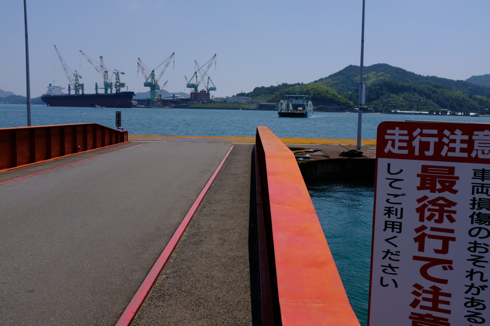 5 Kilometer bis zum Hafen Onomichi, dort auf die erste Fähre zur ersten Insel auf der Seto Inlandsee. Weiter auf der vielbefahrenen ( von Fahrrädern) Fahrradstrasse von Onomichi nach Imabari. Auf halber Strecke biegen wir rechts ab, mit der Fähre auf die verschlafene Insel von Iwagi.