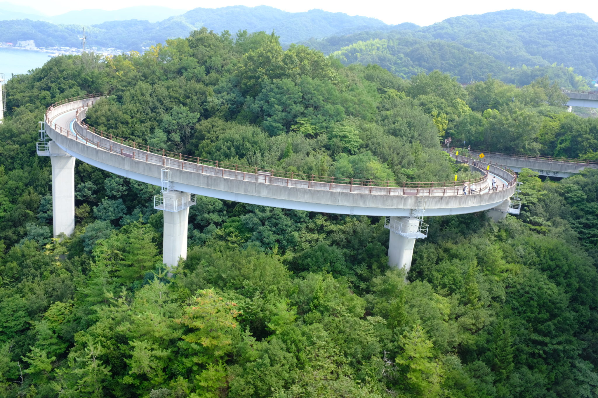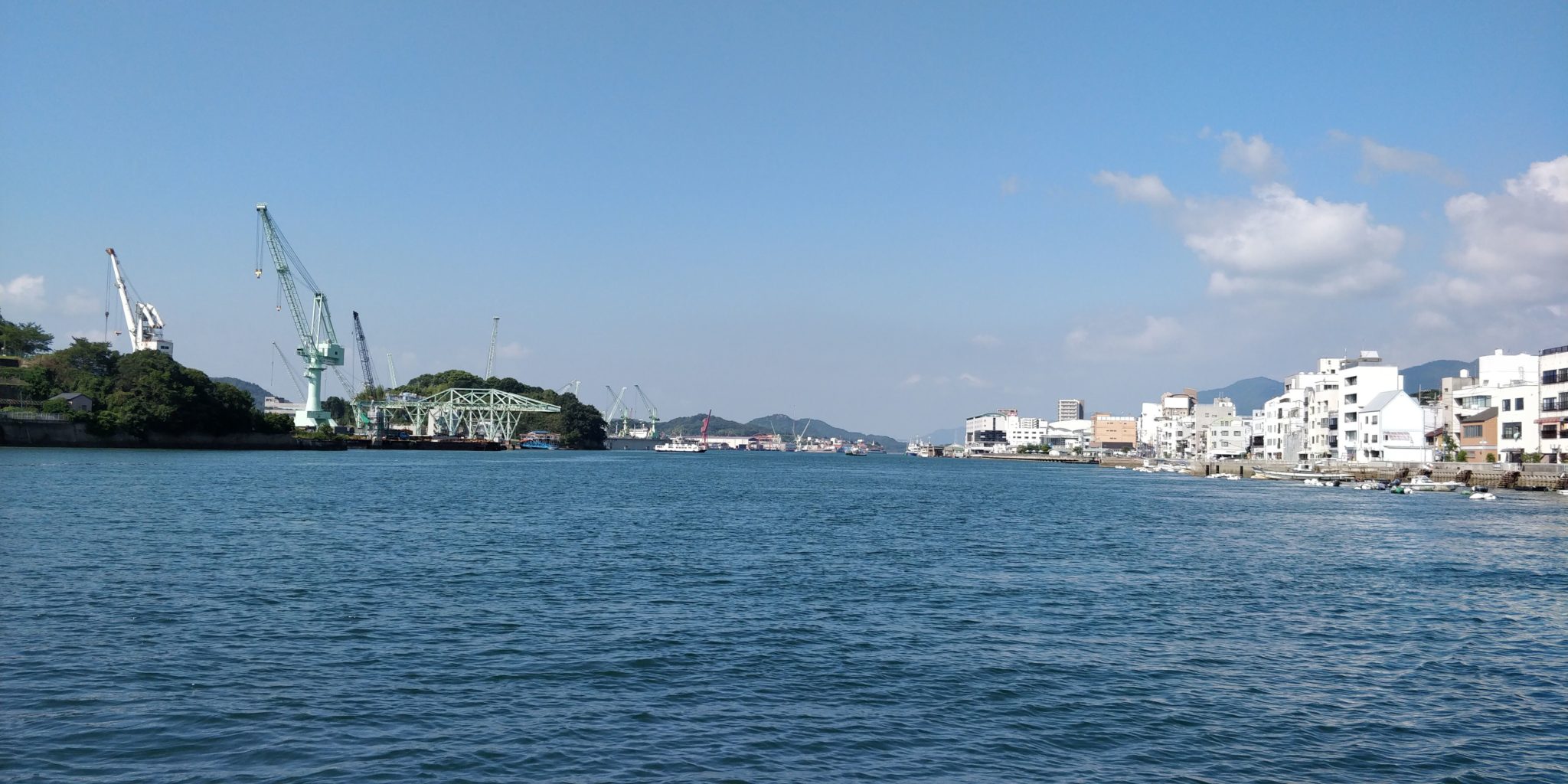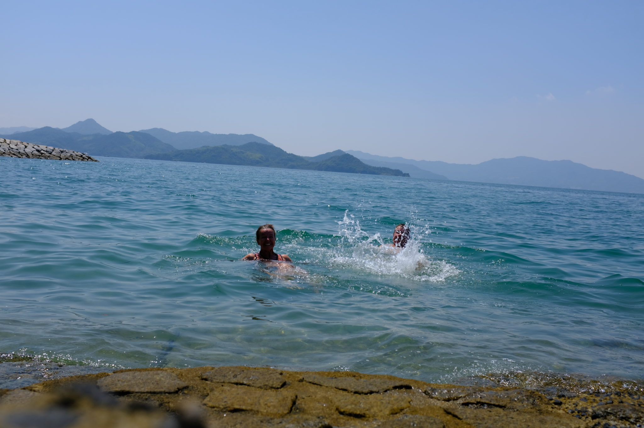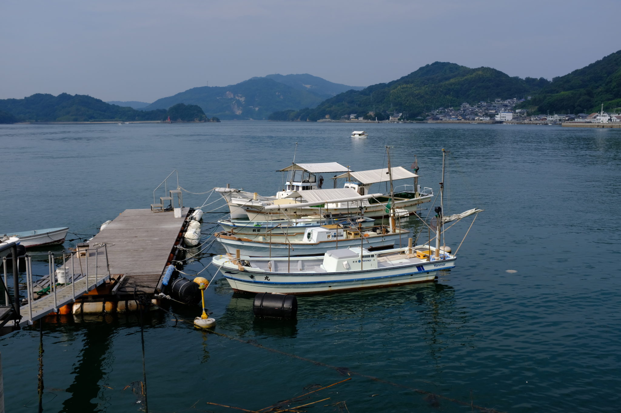 5 Kilometer bis zum Hafen Onomichi, dort auf die erste Fähre zur ersten Insel auf der Seto Inlandsee. Weiter auf der vielbefahrenen ( von Fahrrädern) Fahrradstrasse von Onomichi nach Imabari. Auf halber Strecke biegen wir rechts ab, mit der Fähre auf die verschlafene Insel von Iwagi.