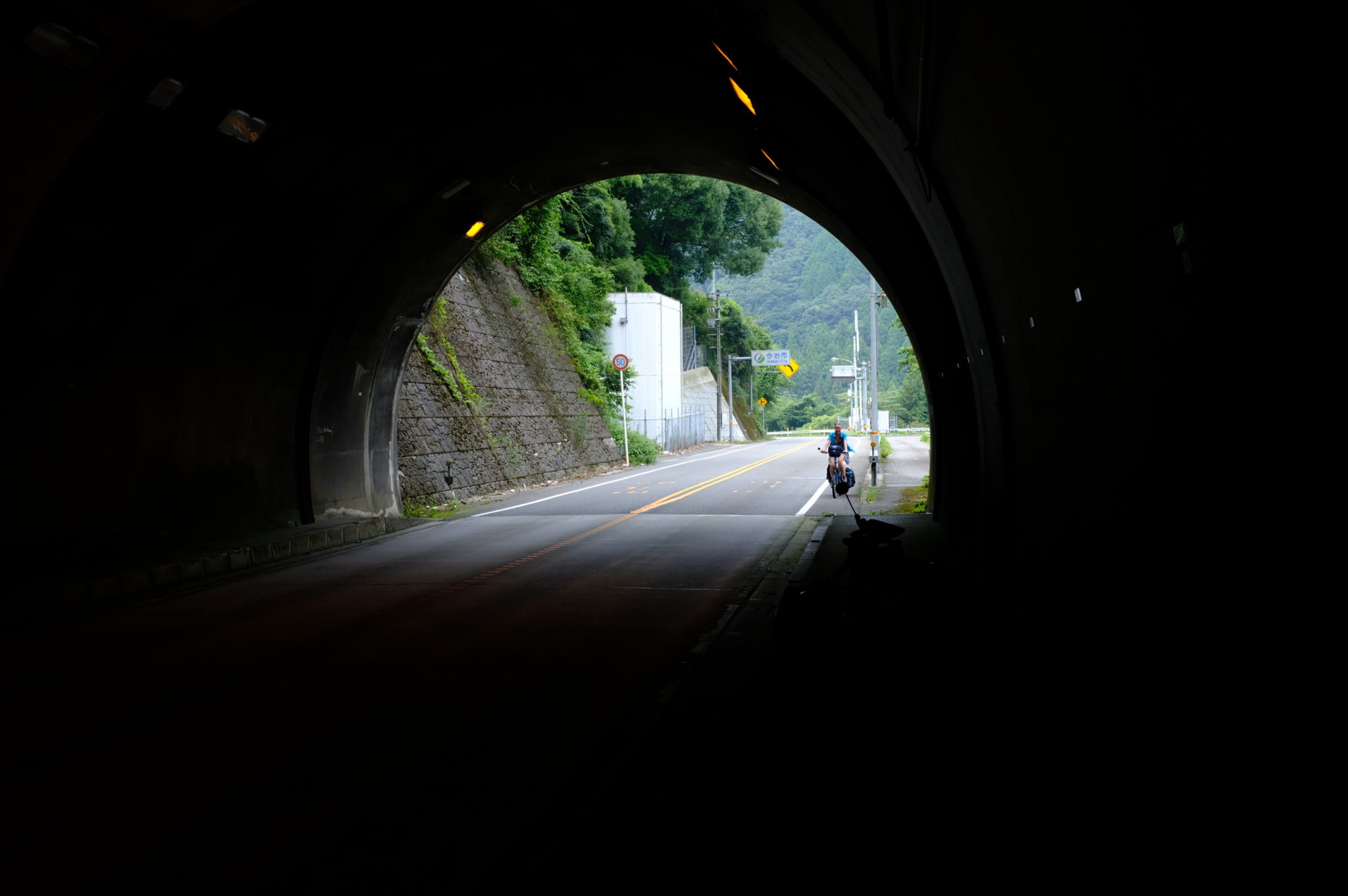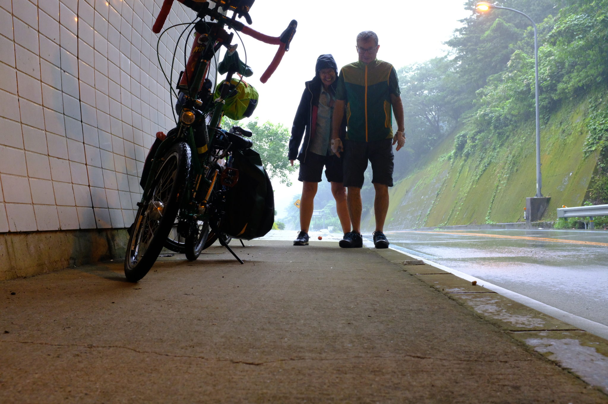 Es ist viel Verkehr, da dies die einzige Strasse zur Fähre nach Kyushu ist. An das ständige hoch und runter haben wir uns gewöhnt. Ab Kilometer 70 nimmt der Regen ab und die Tunnels werden mehr.