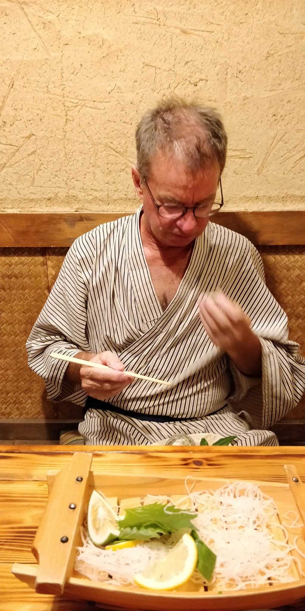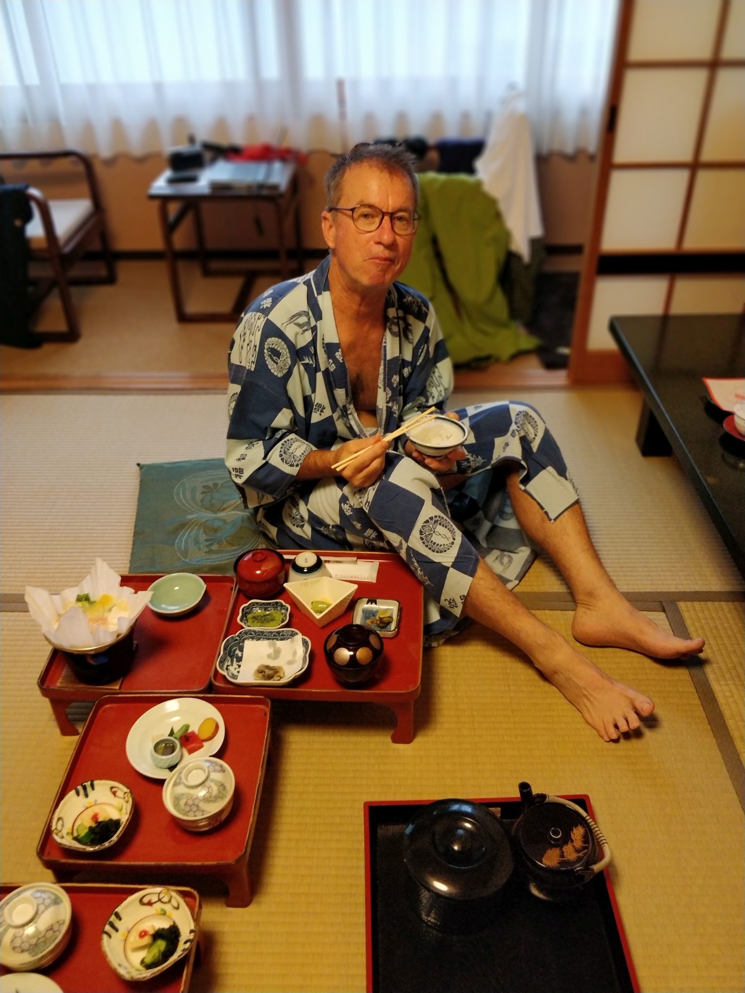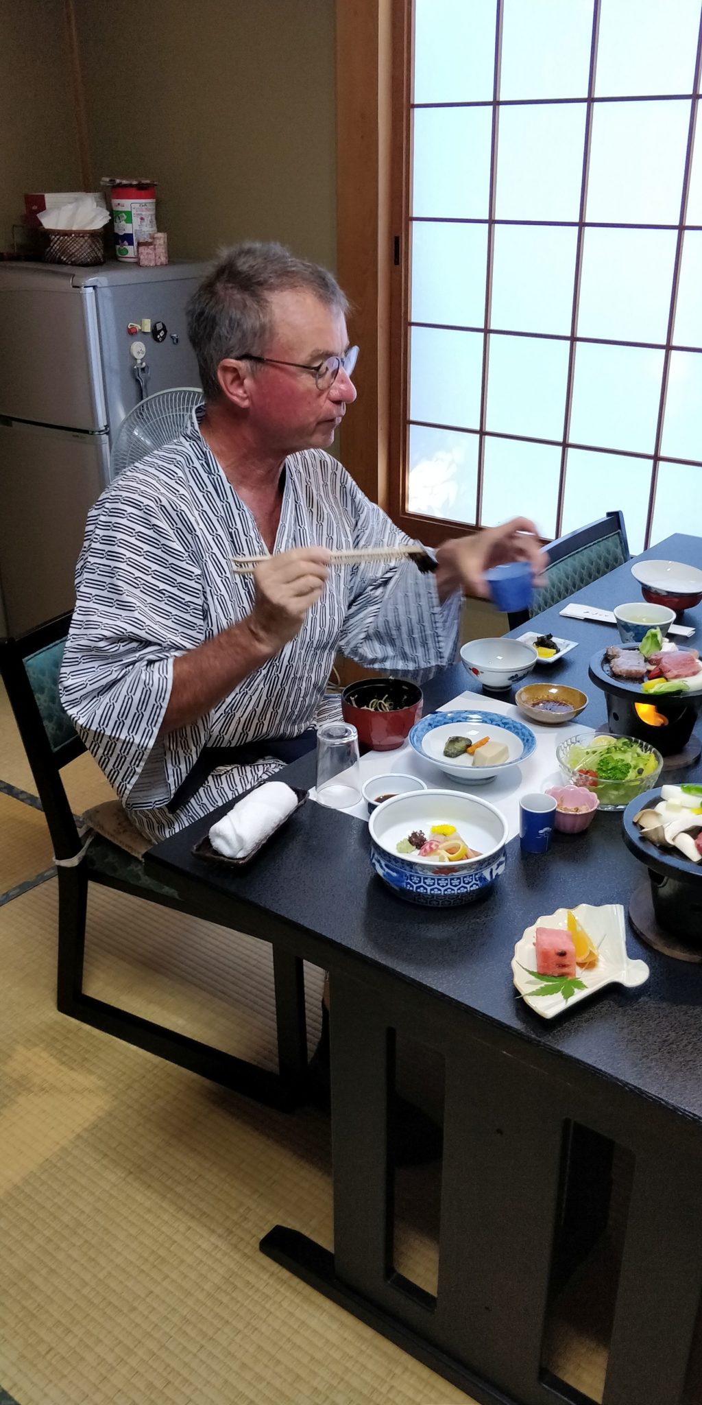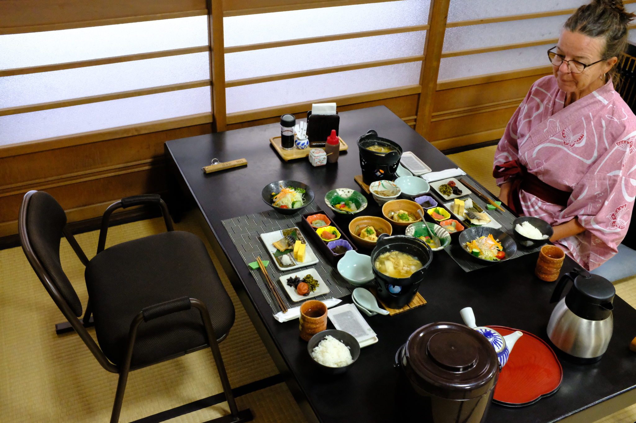 - Frühstück in der Ryokan. Man beachte Konrads extra Thron.