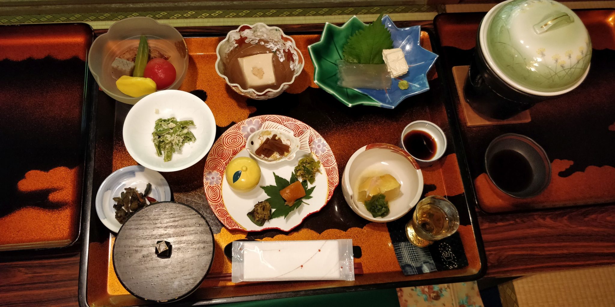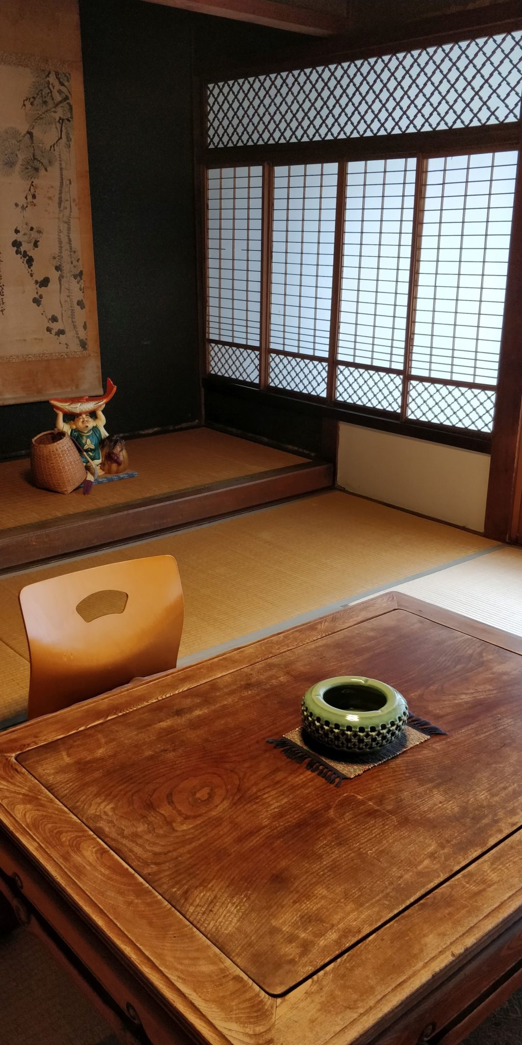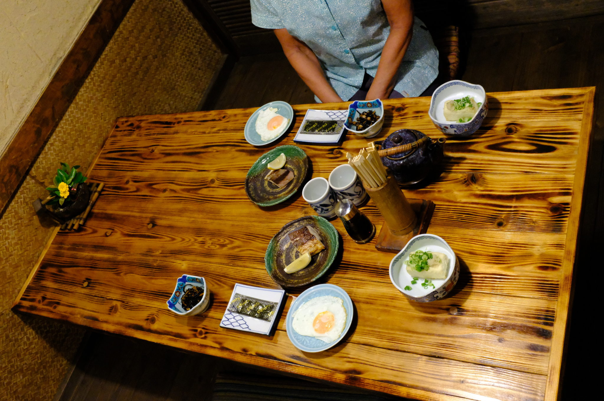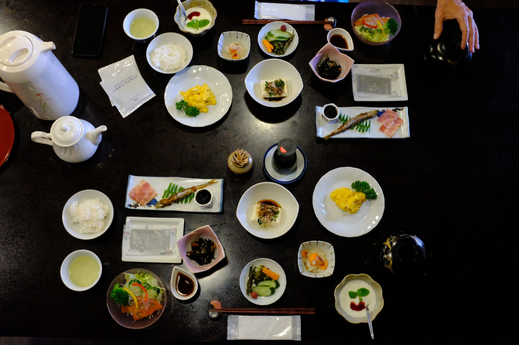 - Frühstück in der Ryokan. Man beachte Konrads extra Thron.