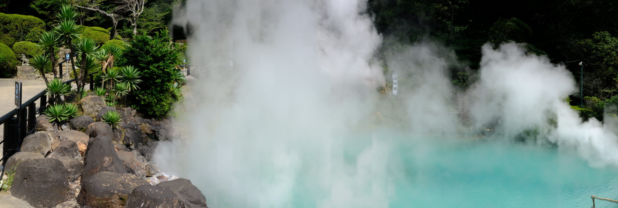 Am Vormittag Besichtigung der dampfenden, blubbernden und fauchenden Quellen von Beppu.