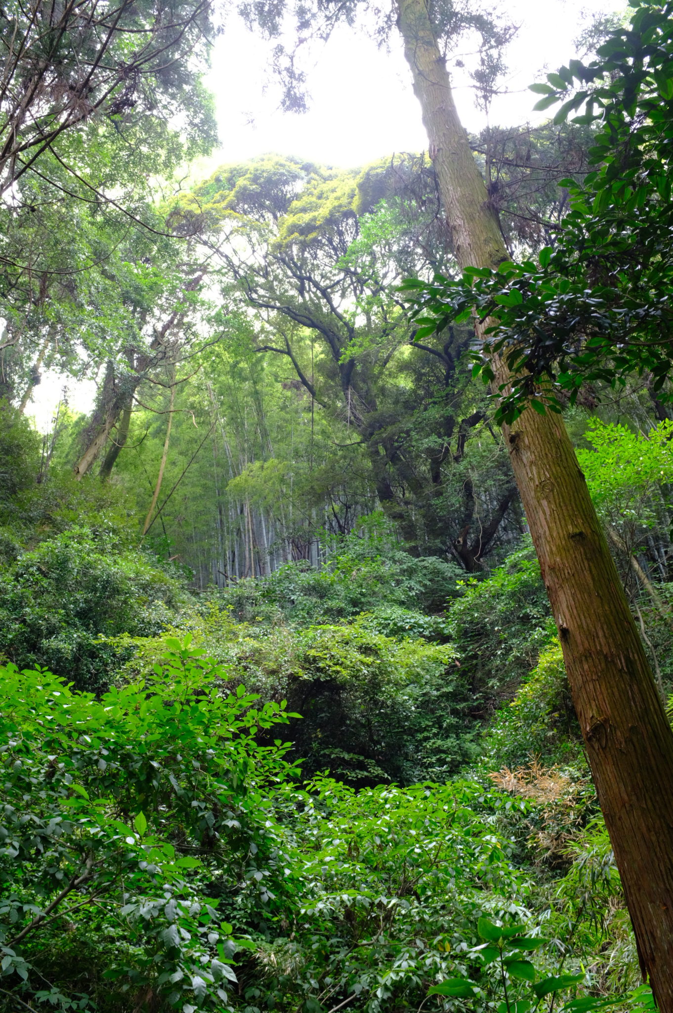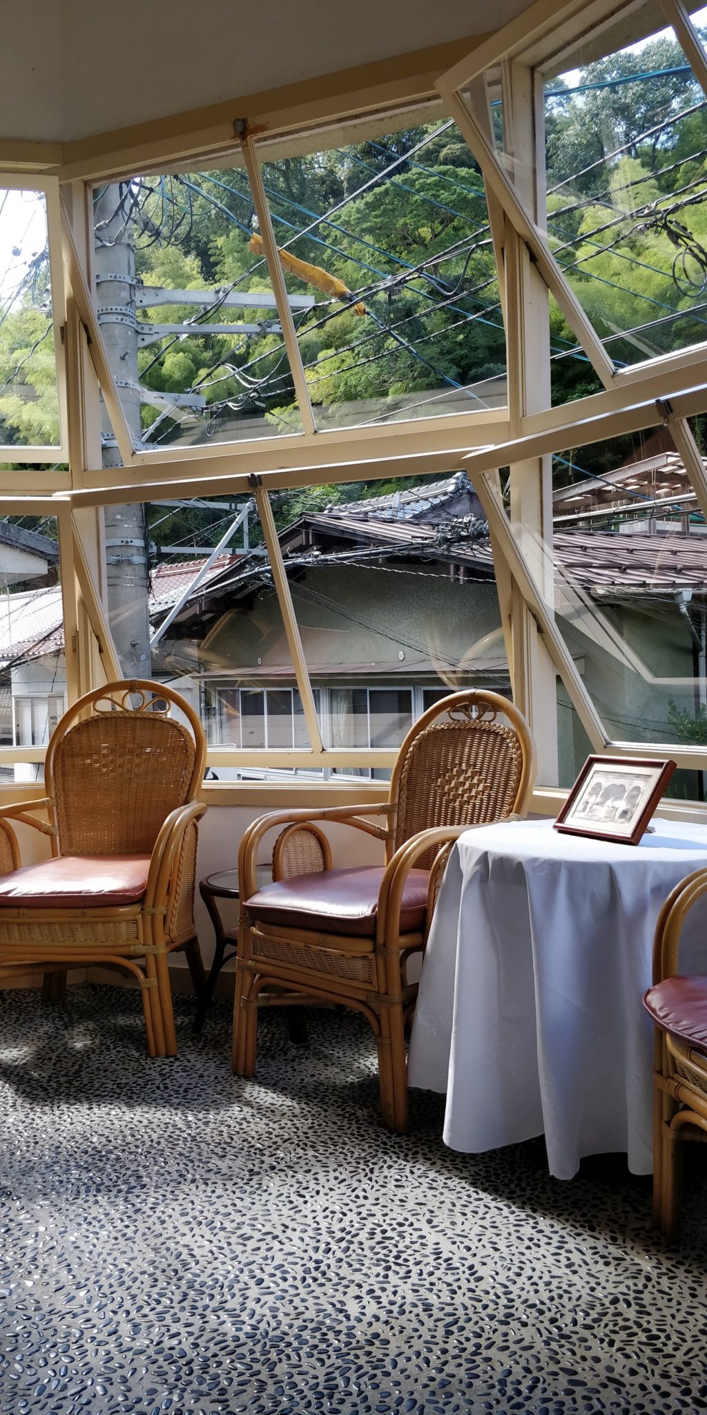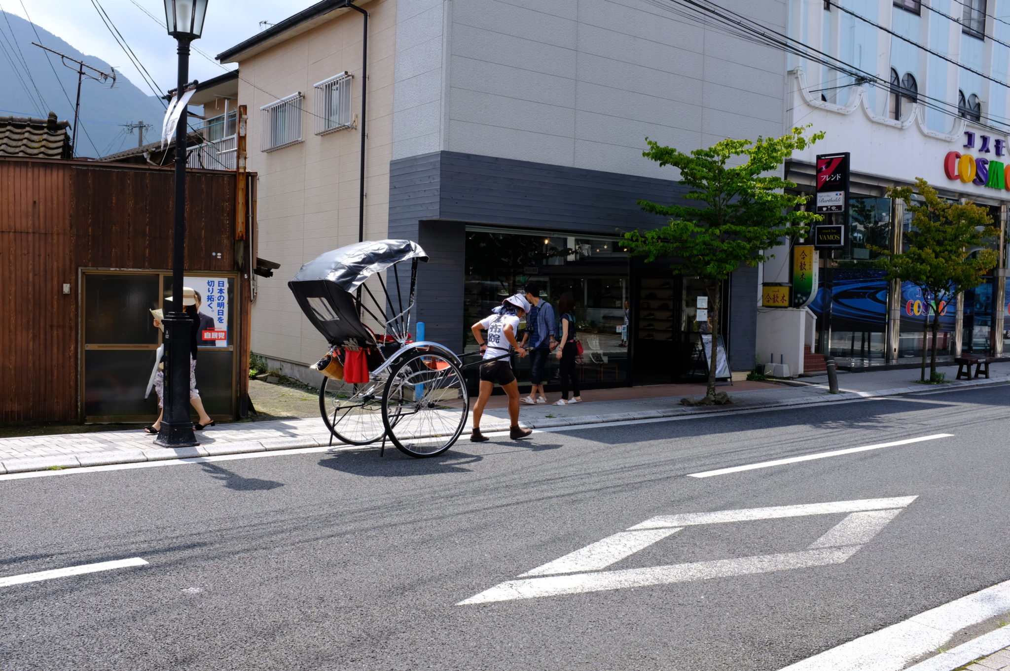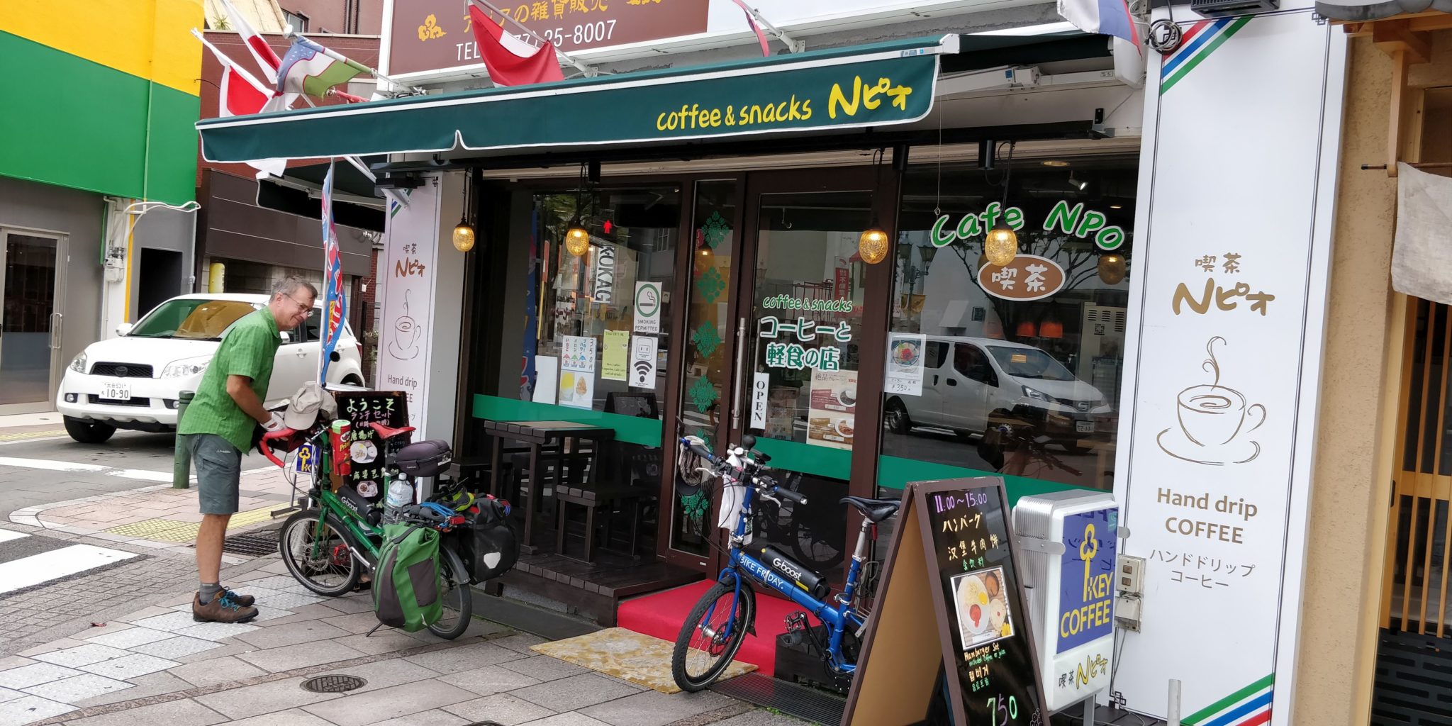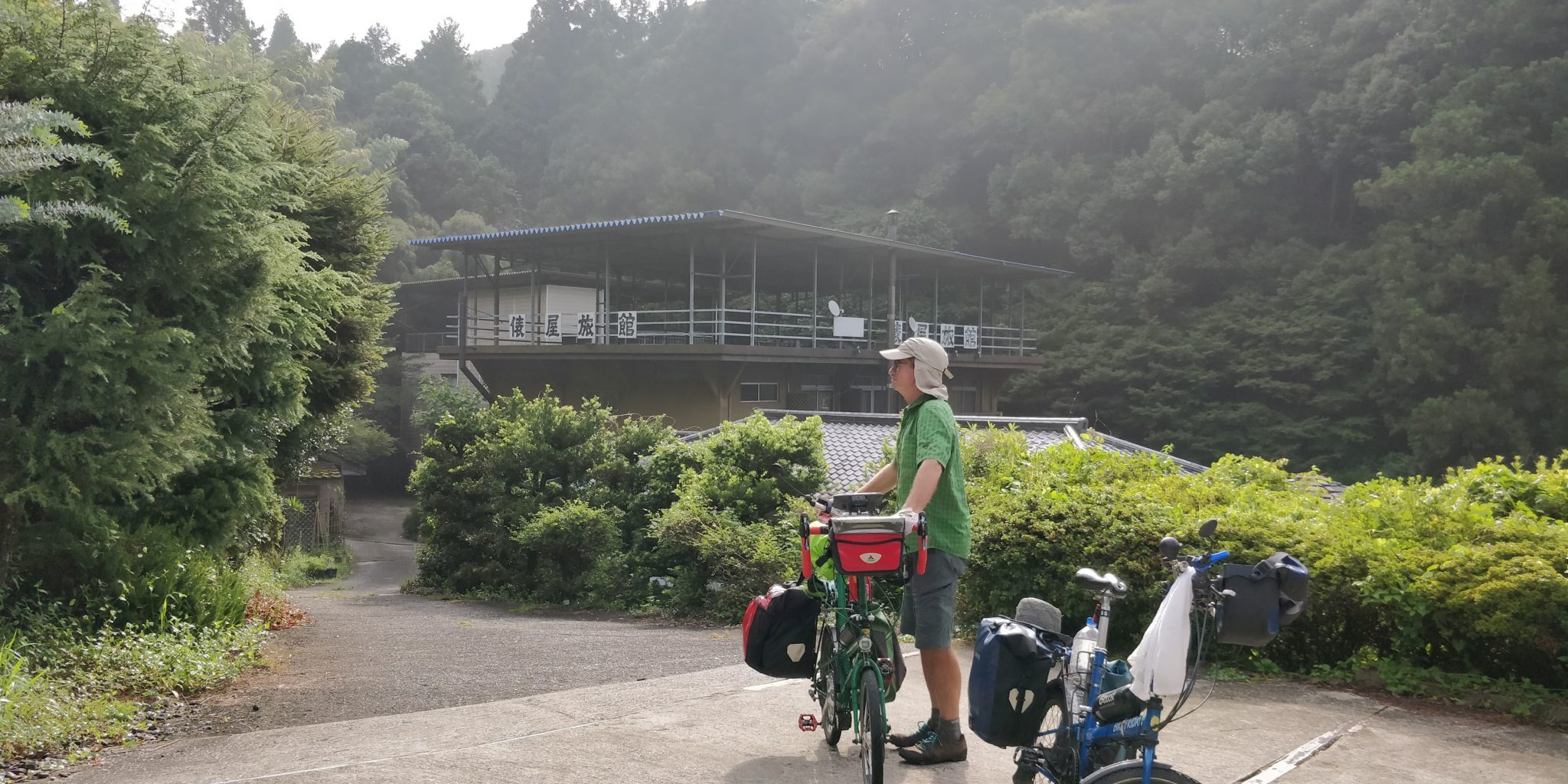 unsere Übernachtung liegt an einer verlassenen/ aufgegebenen Strasse. Der Verkehr fließt seit einiger Zeit auf einer neuen Strasse. Die Ryokan wurde zu belebterer Zeiten gebaut. Jetzt ist sie ziemlich heruntergekommen. Wir sind die einzigen Gäste. Betreiber ist ein seltsamer Japaner. Wir kommen uns vor wie in einem Geisterhaus. Nach dem wie üblich kaffeelosem Frühstück geht es auf der alten Strasse weiter hoch zum Pass Richtung Oita. Die Präfekturhauptstadt ist groß mit breiten Strassen.