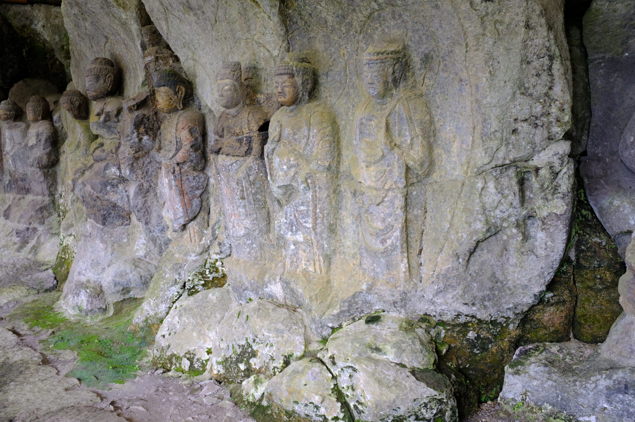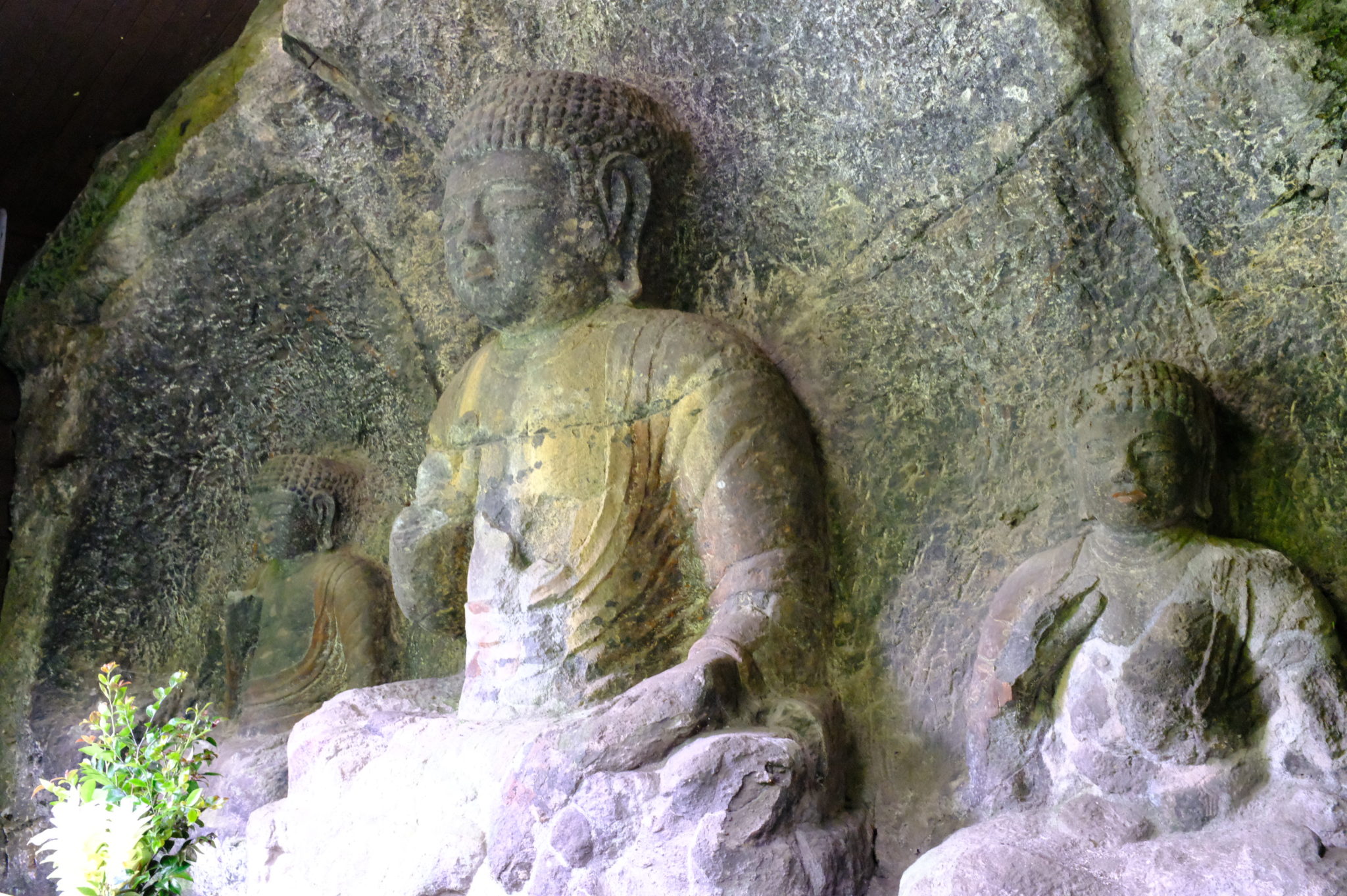 Auf der alten Küstenstrasse geht’s nach Usuki. Dort Mittagessen bei Lawson und weiter zu den Steinbuddas. Es ist drückend schwül warm und wir sind von gestern noch recht müde.