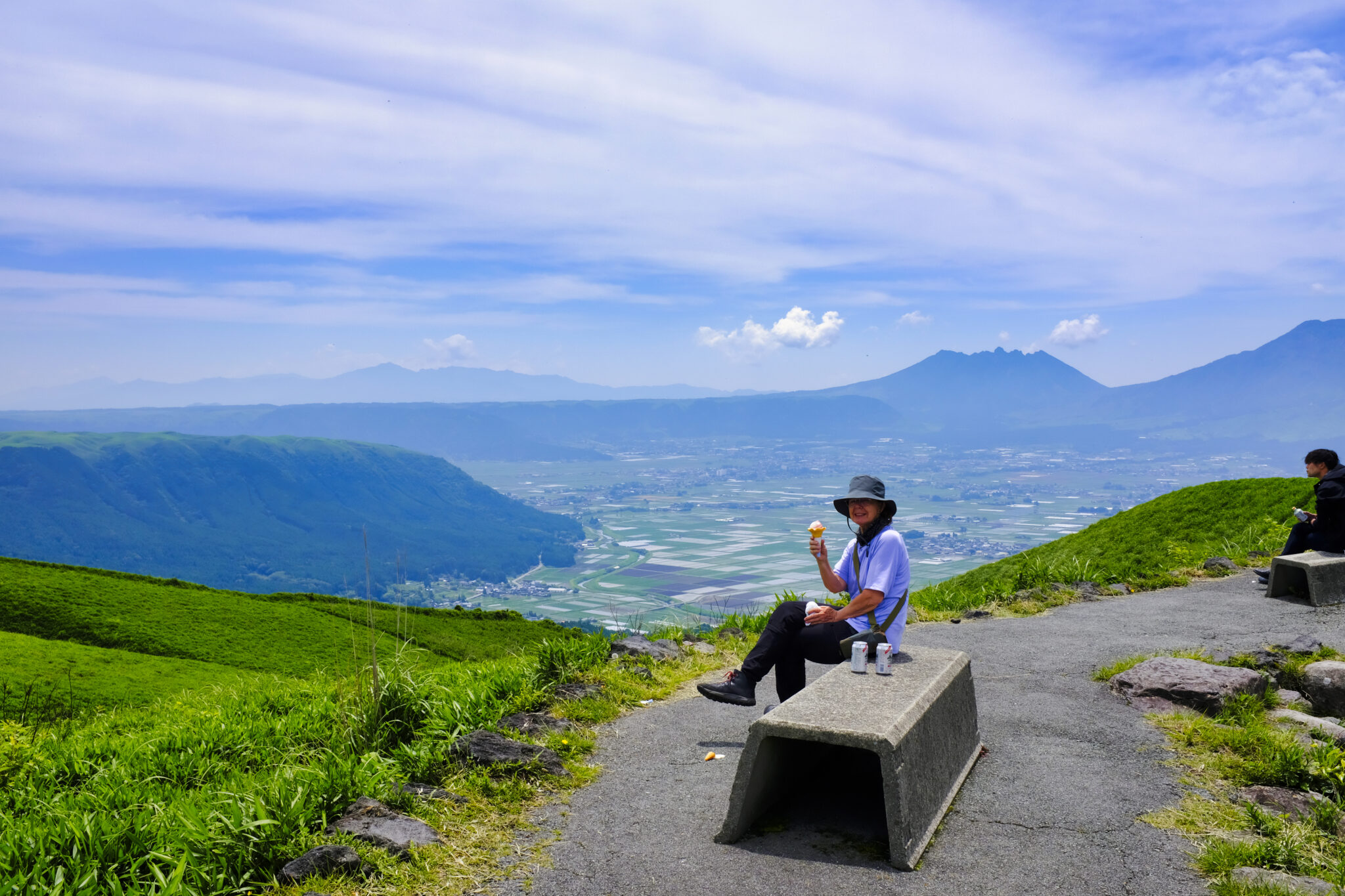 Hier hat man eine fantastische Aussicht auf die Aso Caldera.