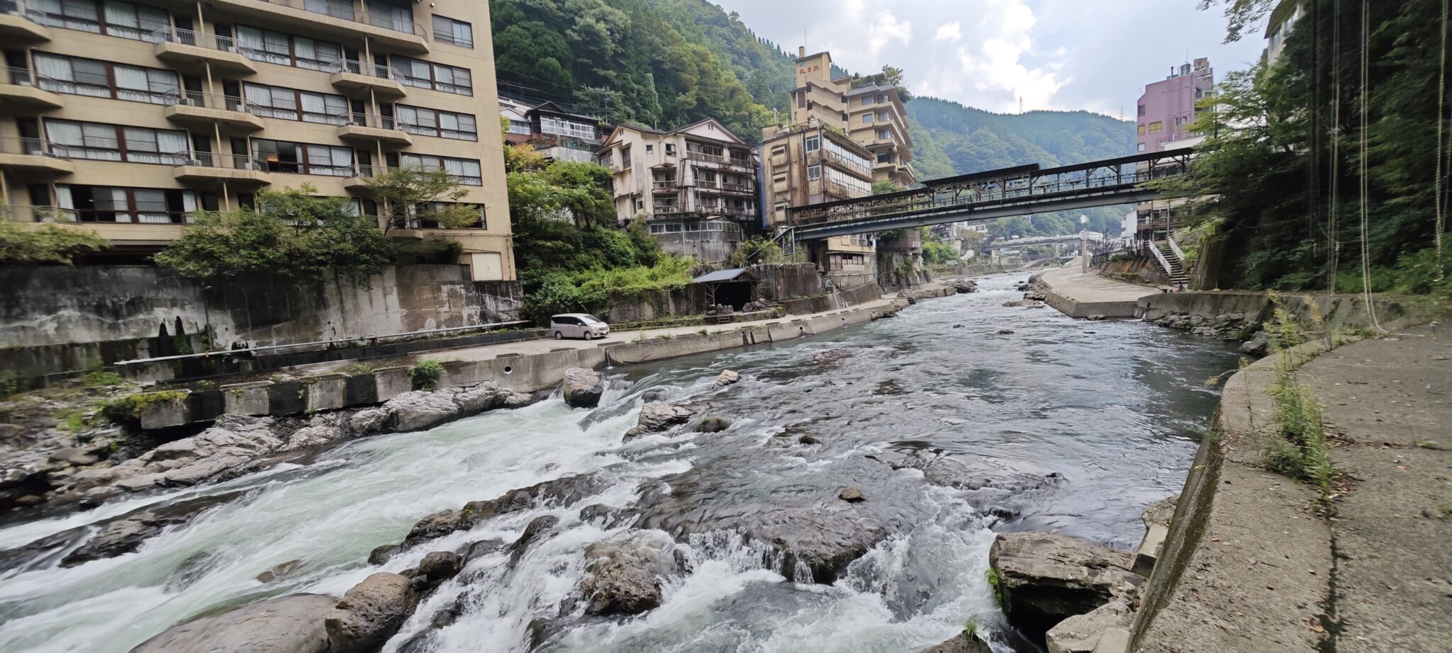- Blick über den reißenden Tsuetate Fluss