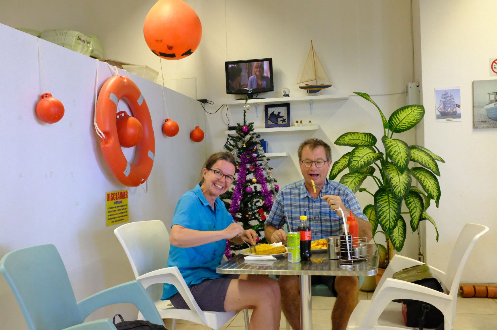 Das alles in einem stark bewachten Dorf mit Schranke und Wächter. Die Unterkunft ist die teuerste auf der ganzen Reise, leider sehr in die Jahre gekommen, und ziemlich ungepflegt. Wir freuen uns auf den kalten Kaffee am Morgen.