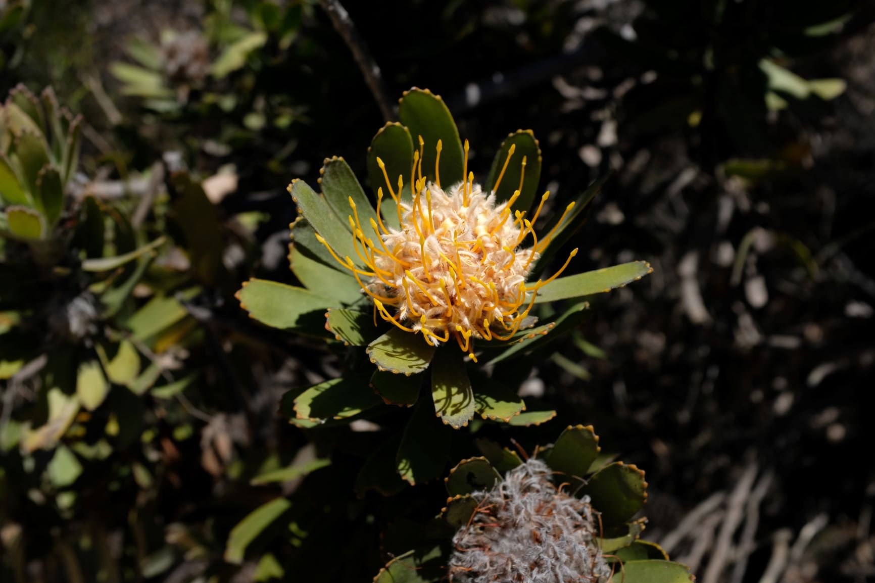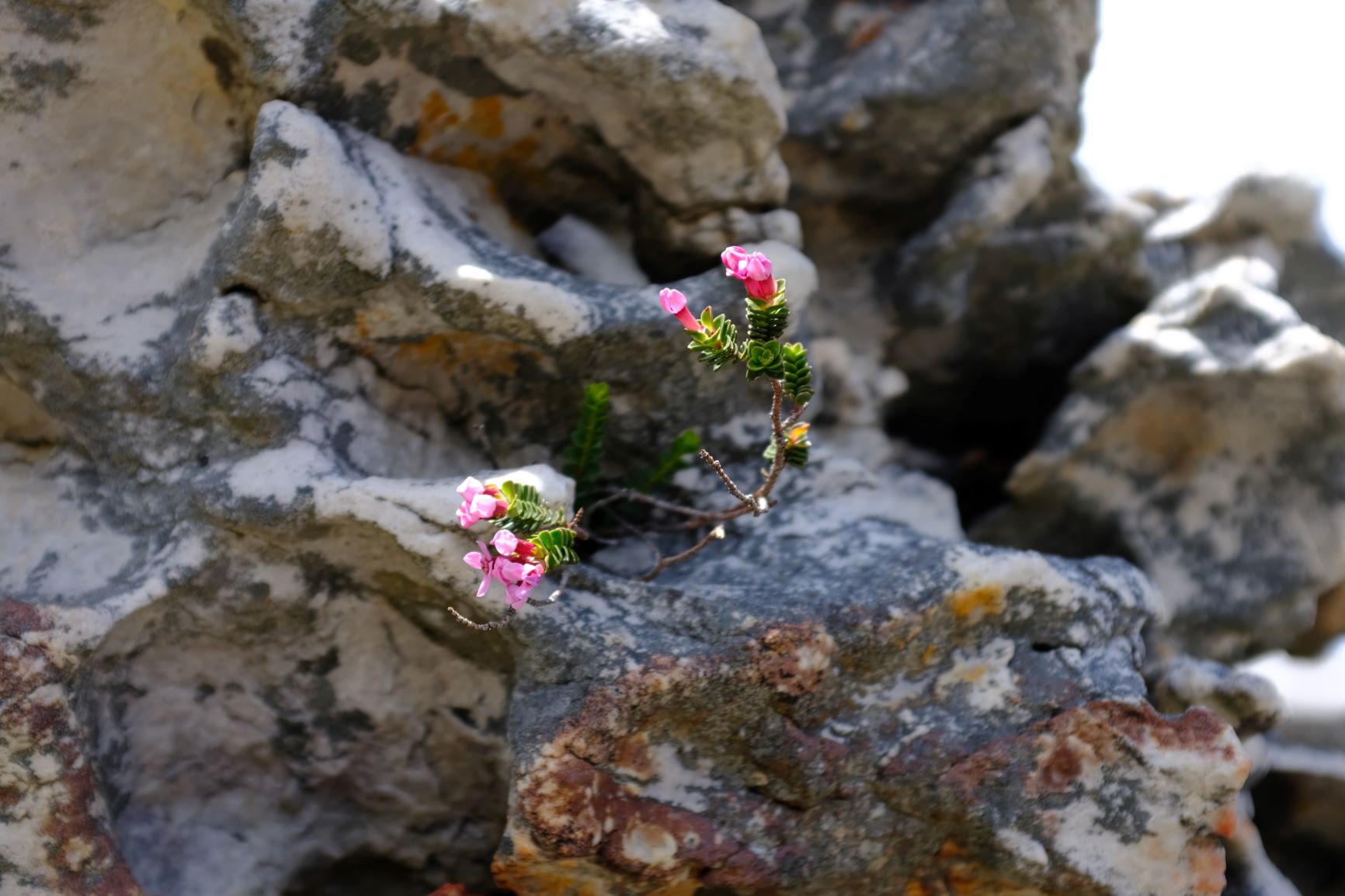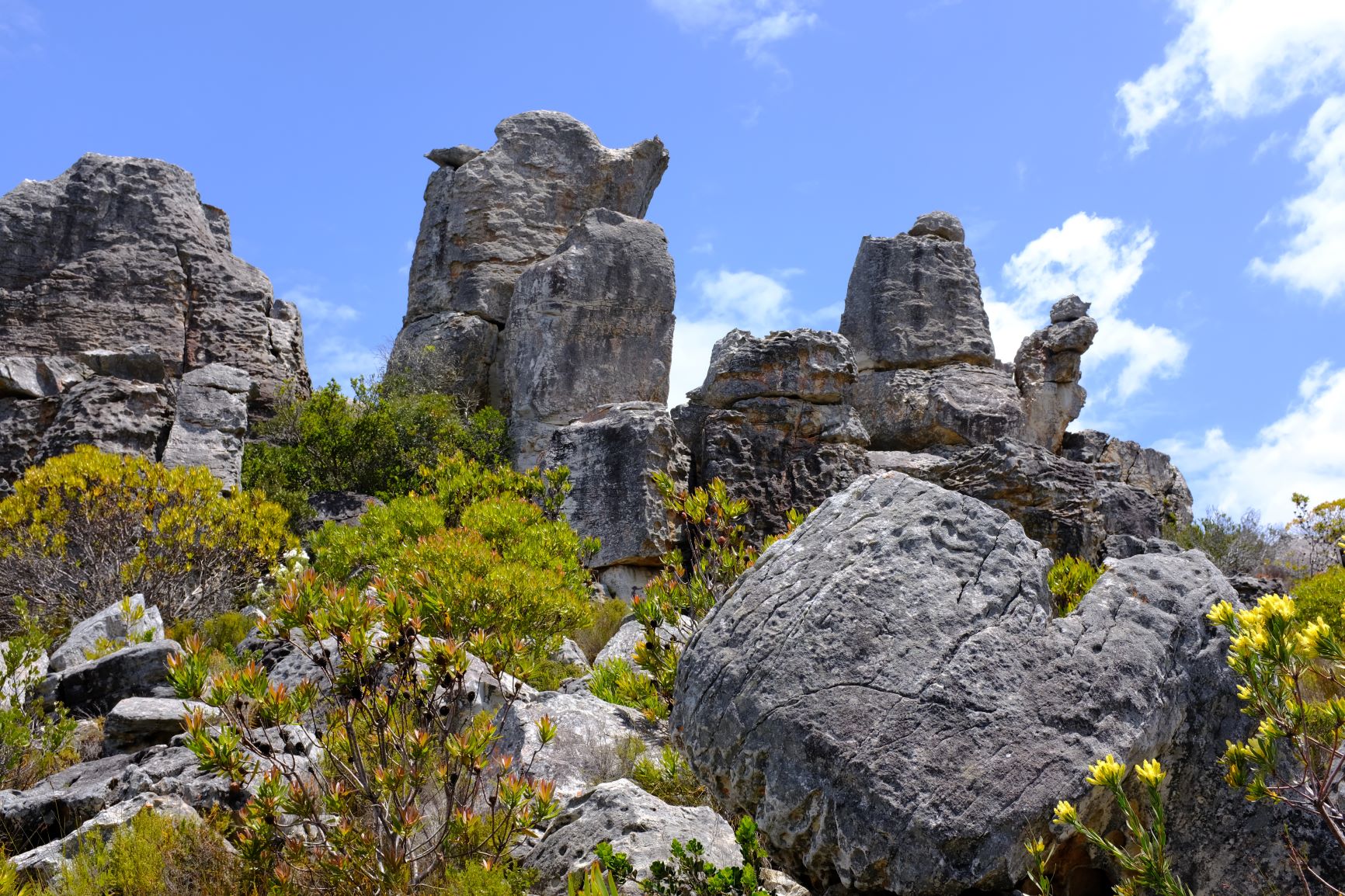 Fahrt zum Kogelberg Nature Reserve. Vorbei an frisch verbranntem Wald, Busch und auch so manchem Haus. Wegen der Brände und deren Löscharbeiten waren auch der Harold Porter Nat. Botanical Garden und der offizielle Zugang zum Kogelberg Nat. Reserve gesperrt, bzw. geschlossen. So ging es zum Stony Point, wo eine Kolonie afrikanischer Pinguine brütet. Die kleinen sind zwar schon beinahe ausgewachsen aber dennoch sehr schön zu beobachten. Auf einem Holzsteg kommt man ganz dicht ran. Schon alleine die Küste mit den bizarren Felsen ist sehenswert. Auf der Heimfahrt nach Hermanus bestiegen wir noch einen felsigen Berg auf der Suche nach den legendären Kapleoparden.