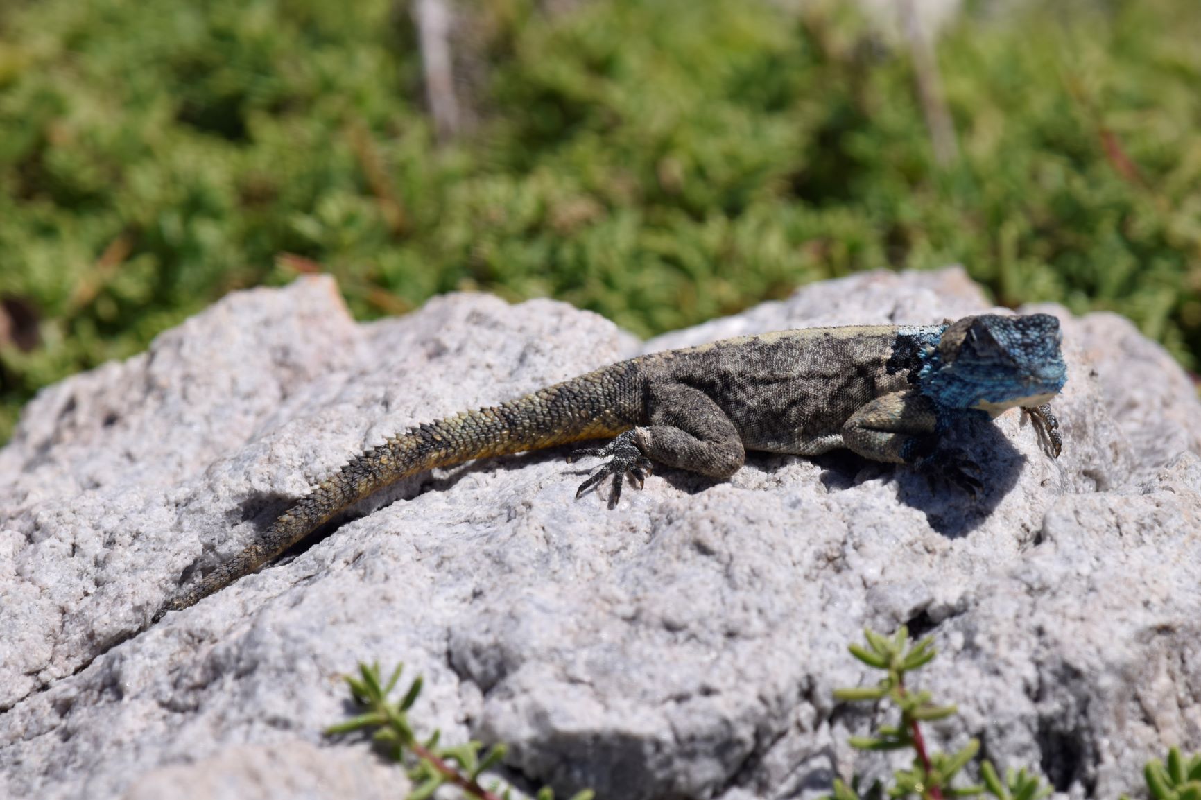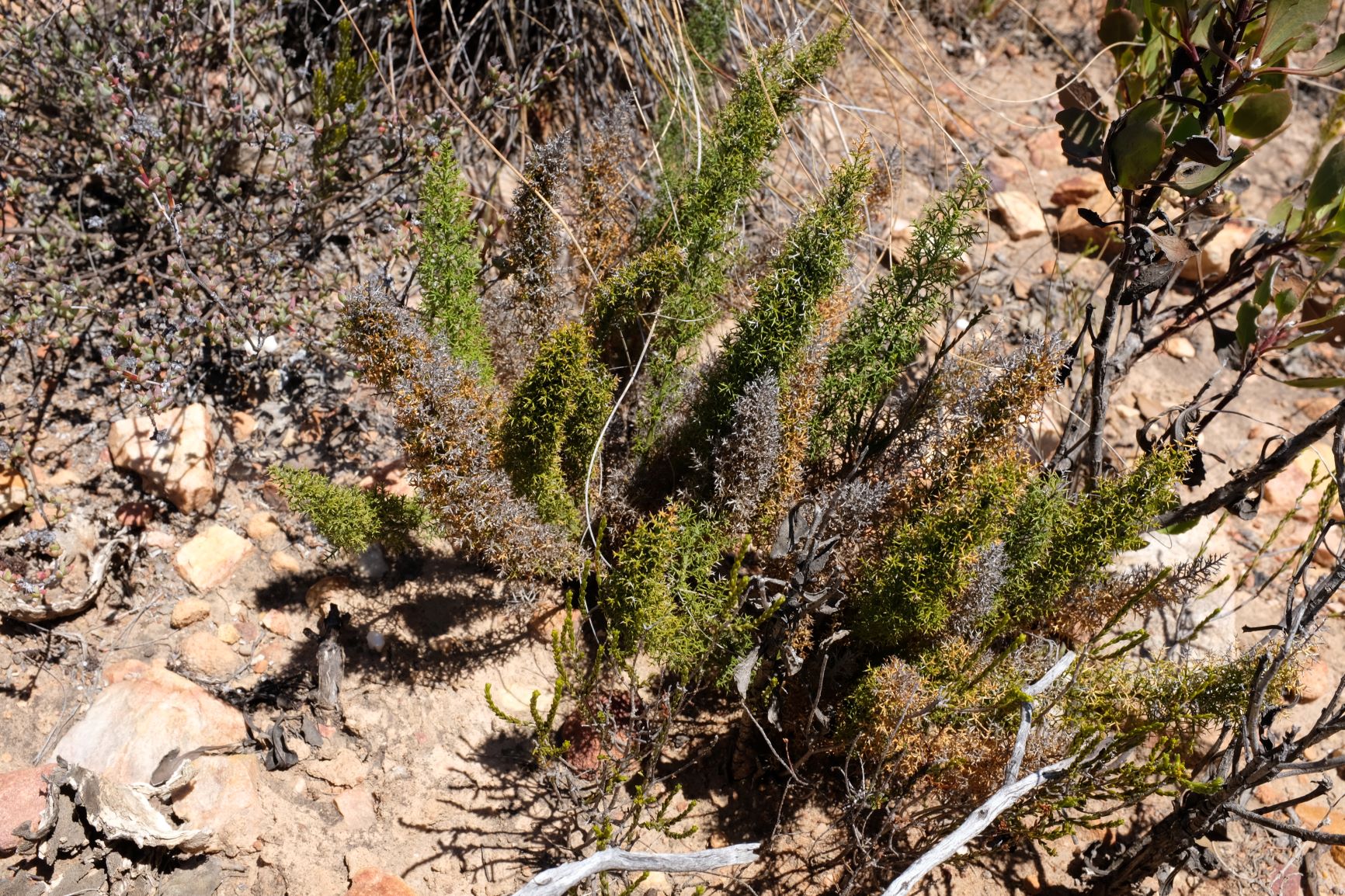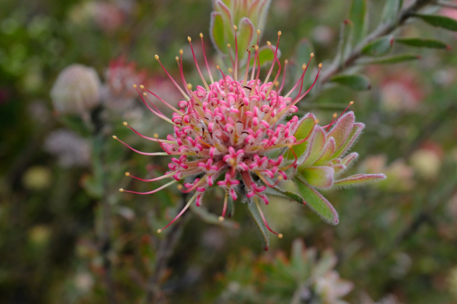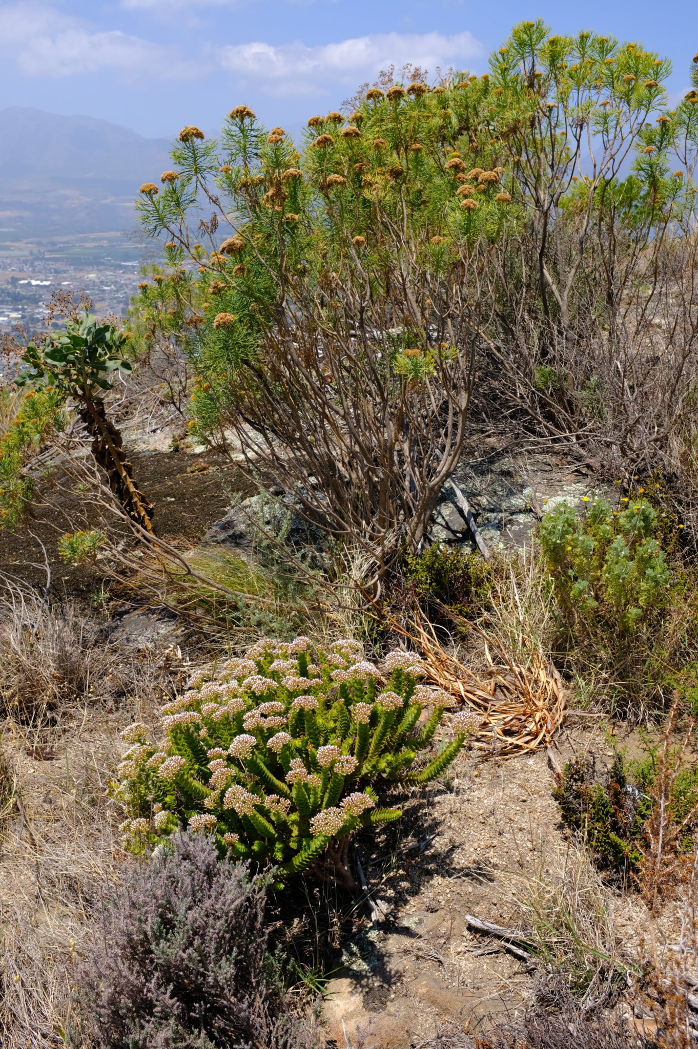 Fahrt zum Kogelberg Nature Reserve. Vorbei an frisch verbranntem Wald, Busch und auch so manchem Haus. Wegen der Brände und deren Löscharbeiten waren auch der Harold Porter Nat. Botanical Garden und der offizielle Zugang zum Kogelberg Nat. Reserve gesperrt, bzw. geschlossen. So ging es zum Stony Point, wo eine Kolonie afrikanischer Pinguine brütet. Die kleinen sind zwar schon beinahe ausgewachsen aber dennoch sehr schön zu beobachten. Auf einem Holzsteg kommt man ganz dicht ran. Schon alleine die Küste mit den bizarren Felsen ist sehenswert. Auf der Heimfahrt nach Hermanus bestiegen wir noch einen felsigen Berg auf der Suche nach den legendären Kapleoparden.