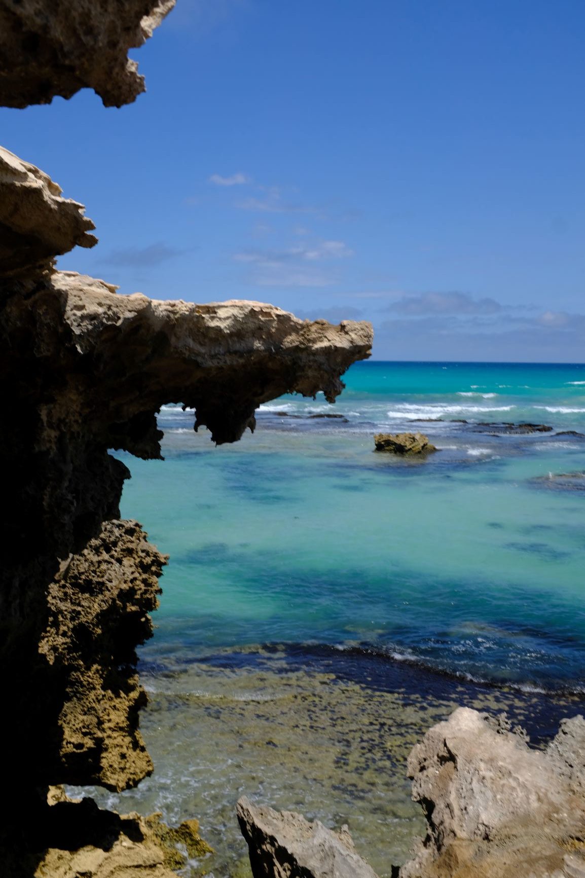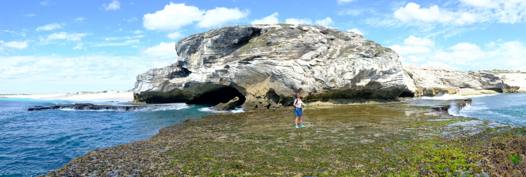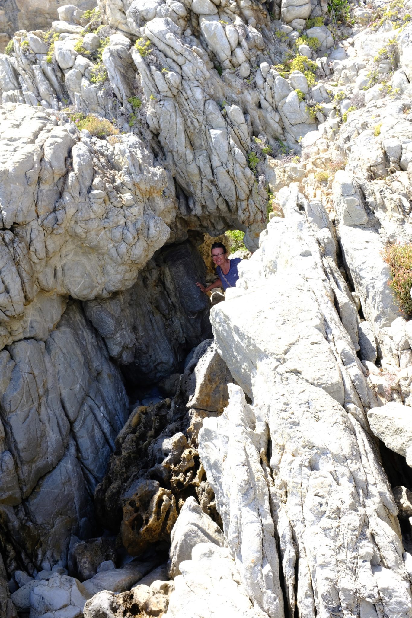 Besuch der Waenhuiskrans Höhle. Diese ist nur bei Ebbe zugänglich. Zuerst konnten wir den Zugang nicht finden, und schauten und `nur` von draußen nach drinnen. Als wir im Innern Leute bemerkten, machten wir uns auf die Suche nach dem Eingang.