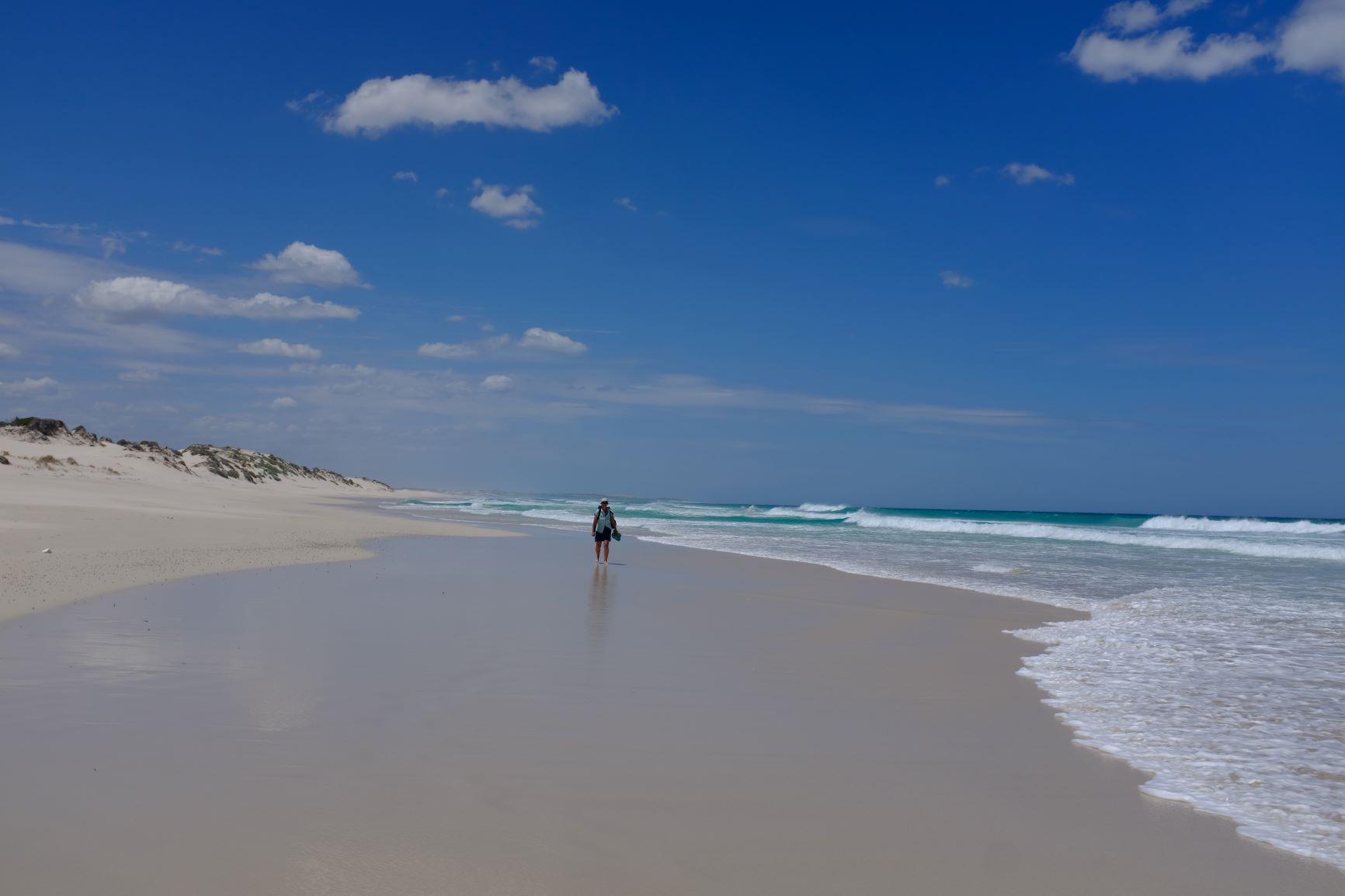 Hier ist übrigens der längste weiße Sandstrand der südlichen Hemisphäre. Auf unserer dreistündigen Wanderung begegneten wir keinem Menschen.
