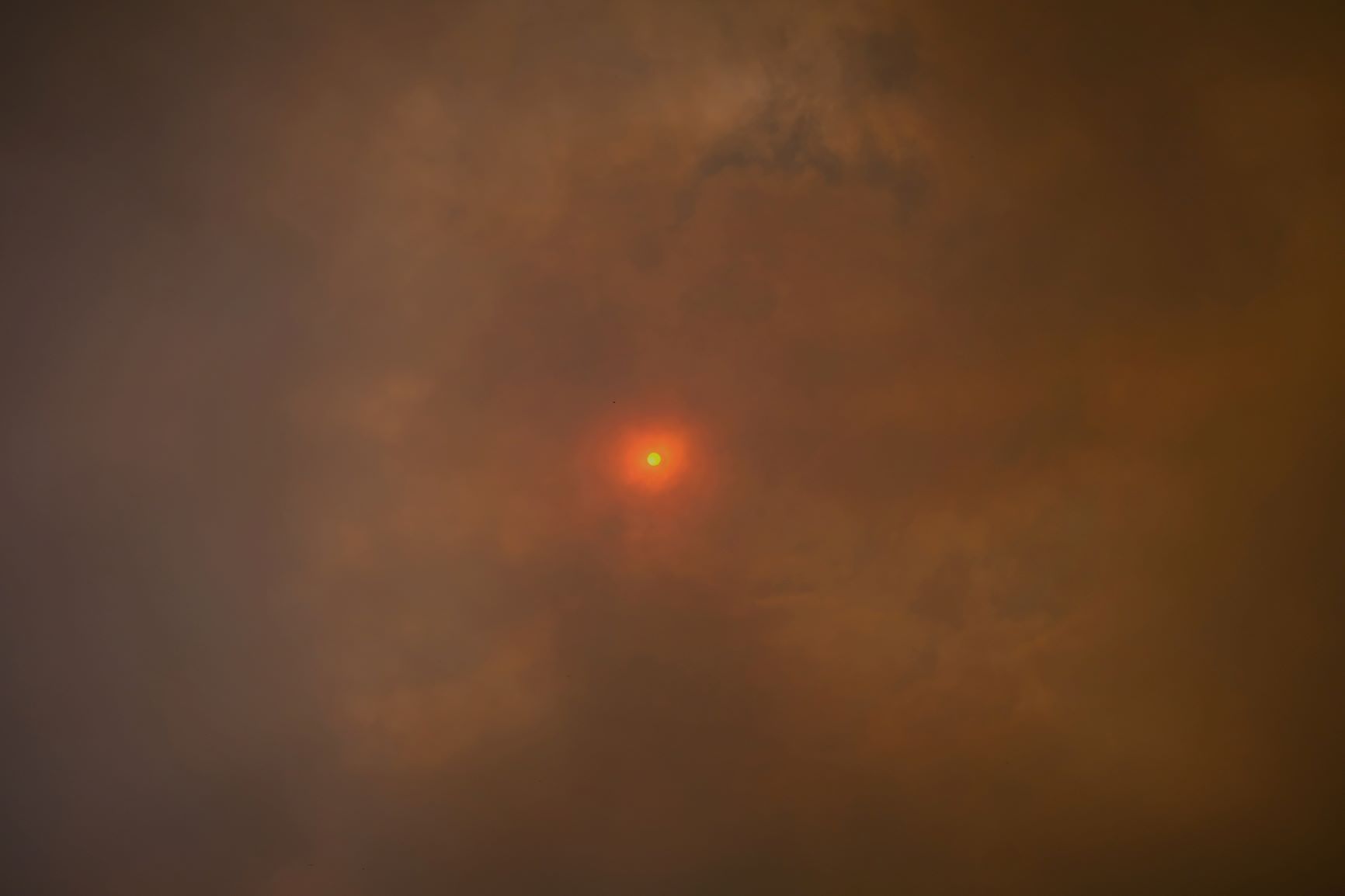 Frühe Fahrt zum Flughafen. Es riecht nach verbranntem Holz.
