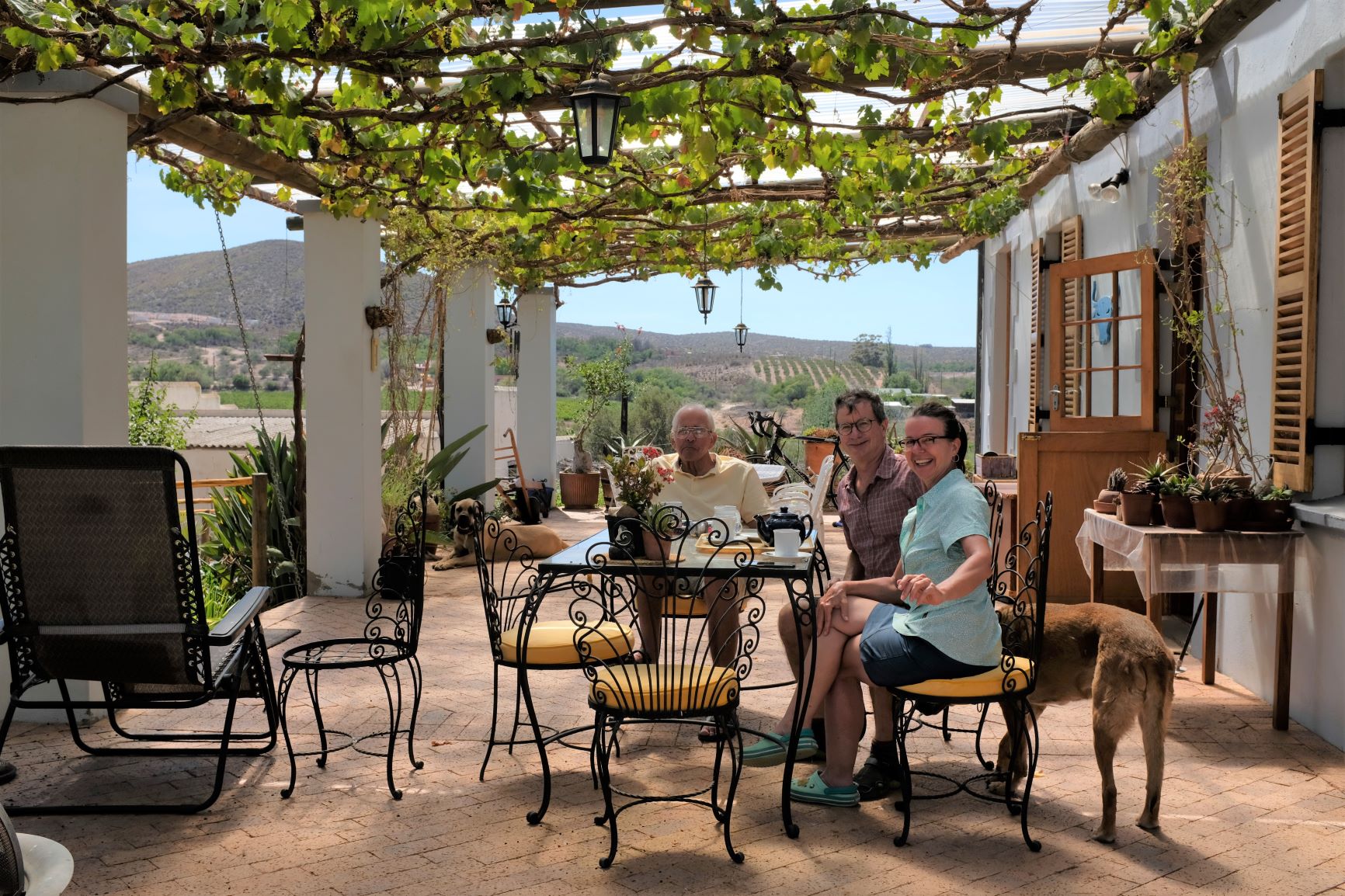 Zum Glück gibt es hier viel Aloe ferox Gels zum einschmieren. Die Übernachtung in L`Agulhas war mit tollem Ausblick aufs Meer. Alles sehr sauber und gepflegt, sehr nette und hilfsbereite Betreiber. Frühsück wieder inclusive Vogelbeobachtung.