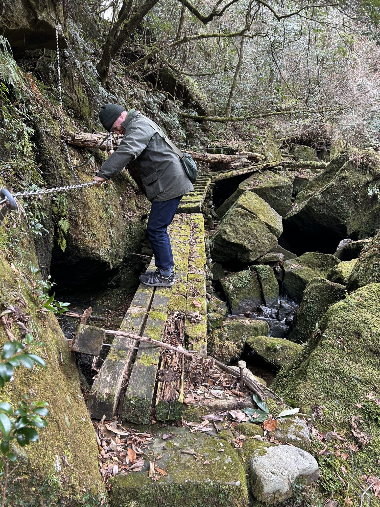 - Die Brücke war wirklich sehr morsch. Man sieht es nicht, aber hier ging es 3 Meter sehr kantig runter.